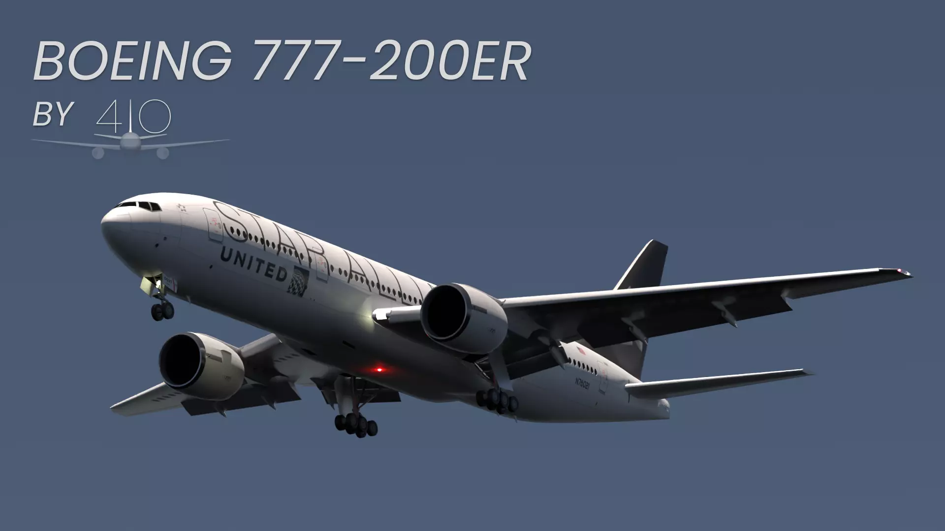 Lightweight 3D exterior model of the American long-range jet airliner Boeing 777-200ER in United Airlines Star Alliance special livery. Model created with official high-quality references and blueprints. Exterior model only.