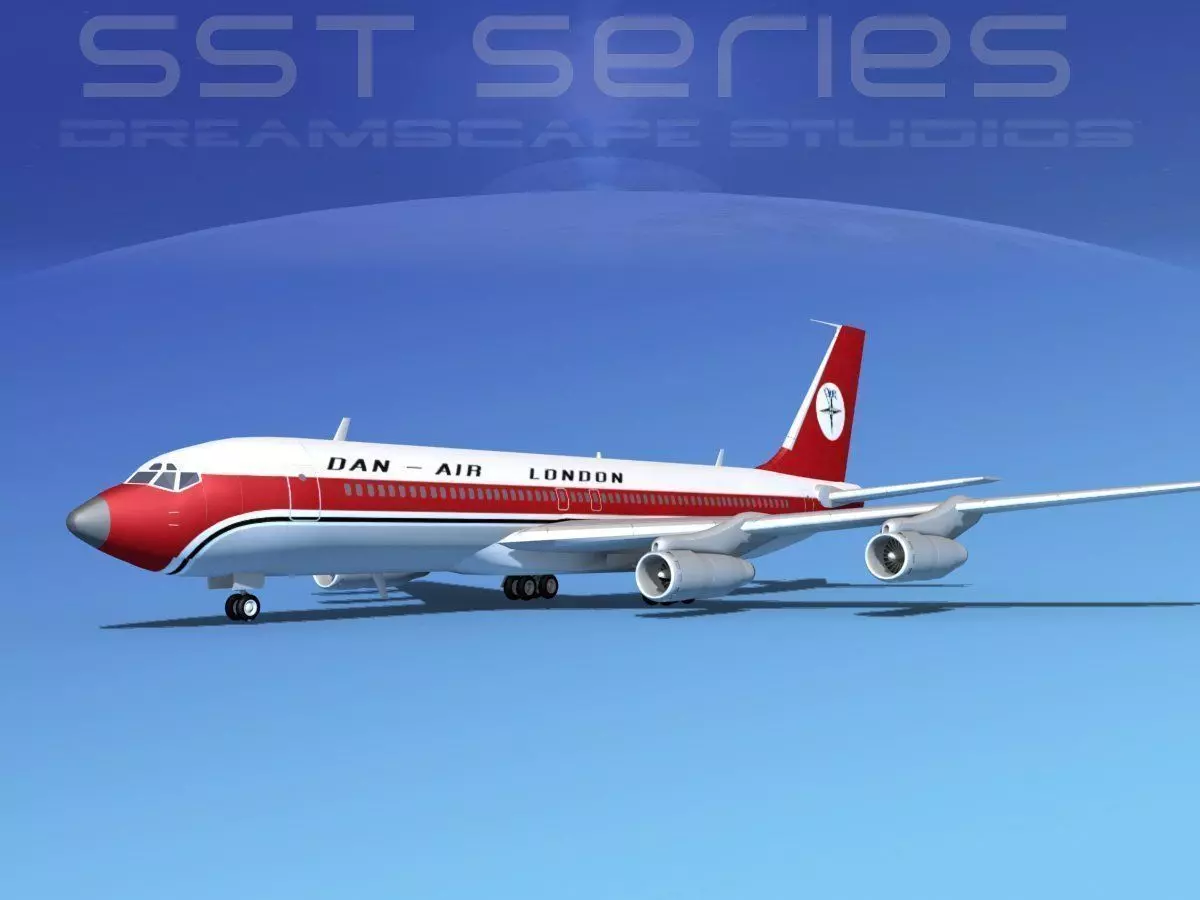 This Boeing 707-320 is built near to scale within a few percent of actual general dimensions. This medium poly model includes smooth exterior with some detail and a realistic rendering appearance. It is built with single sheet textures with a 2000x 2000 resolution. It also has landing gear that can be “turned off or hidden” for inflight animation. This model doe not have the animateable control surfaces of our non-sst model. This is the first model Dreamscape has produced with both single sheet textures and a full complement of liveries giving the user a wide variety of models to choose from.