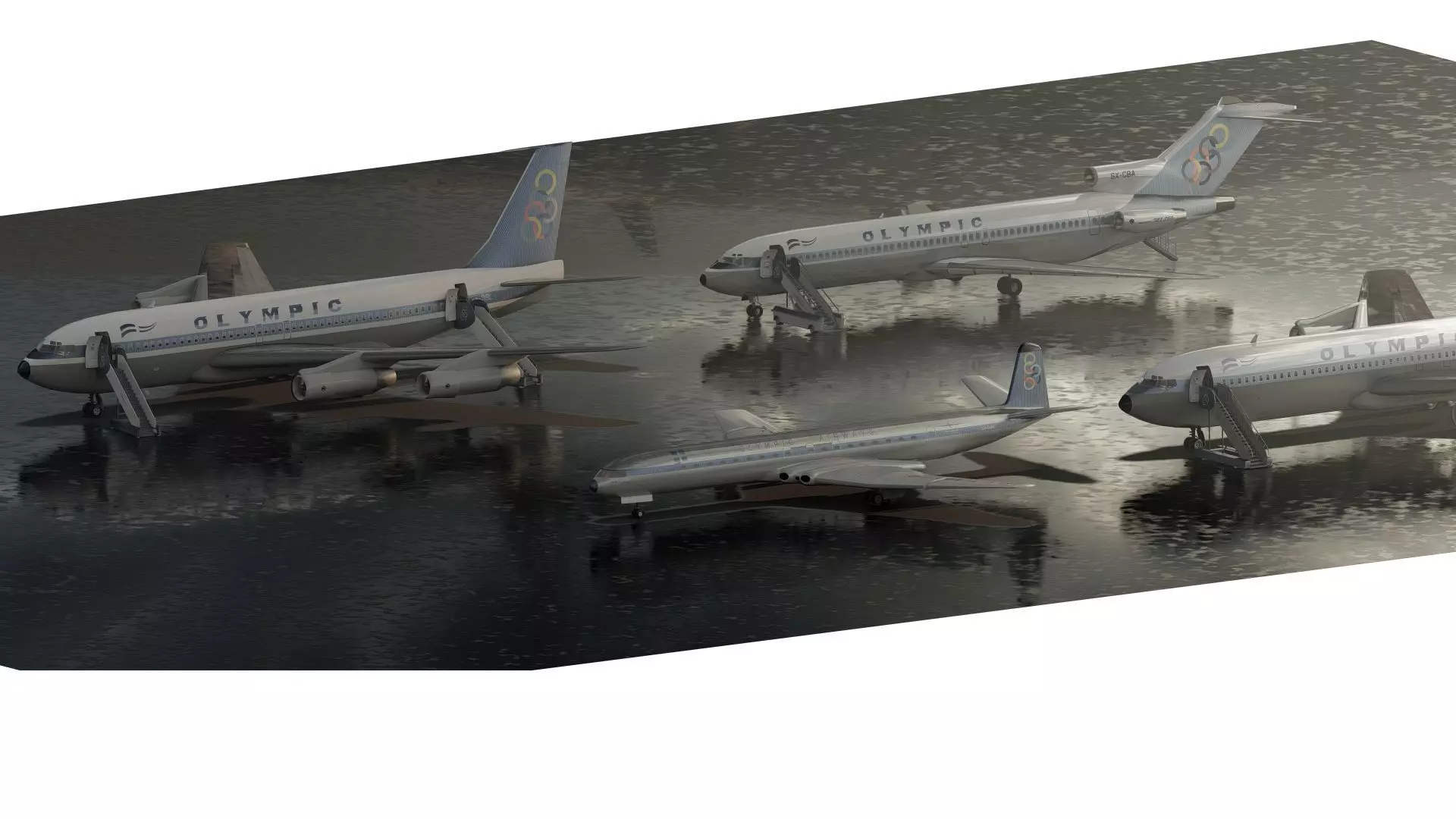 Description This is a model of Boeing 720-051B 727-200 707-320B and De Havilland DH-106 COMET 4B. The 3d model is textured and iluminated for two scenes. One daylight and one with rainy scene. The model is ready to render with Lumion 12.5 or above.The package is built and designed for you to reuse, but above all, study and learn about the development of basic design stages with good 3D models and with materials, textures, camera settings, and light management that make a good balance of lighting possible.