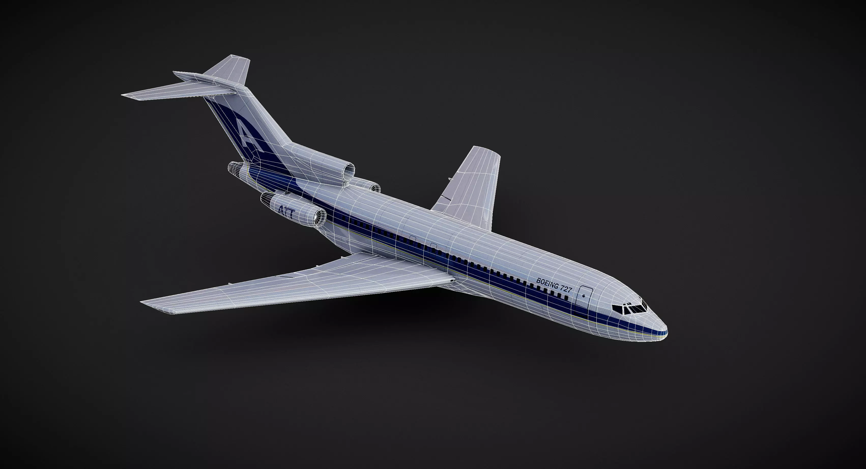 Boeing 727 VR Unity PBR low-poly 3d model ready for Virtual Reality (VR) Single Material ,PBR shadersUnity Package Ready games and other real-time apps. 3D max And FBX ready