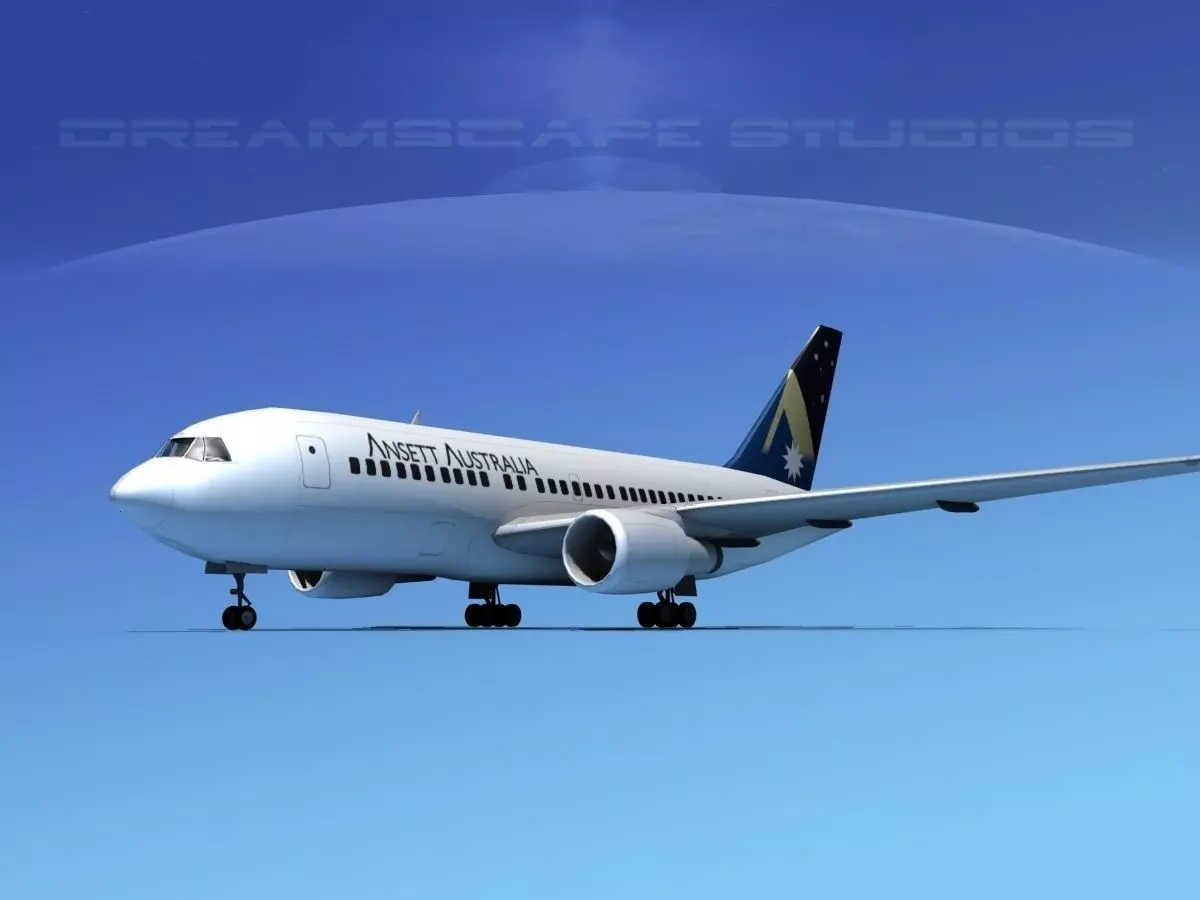Boeing 767-200ER Ansett This model is originally built in 3DStudioMax 13 and rendered in standard scanline. It is built very near to scale, within 3% of actual general dimensions. It includes animateable control surfaces and retractable or hidden landing gear and animateable turbines. The model is built to be used in in-flight animations and video or simulation. It can also be used to populate an airport scene.This model is presented in 63 different airline paint schemes and textures. It is also available in 8 different formats.