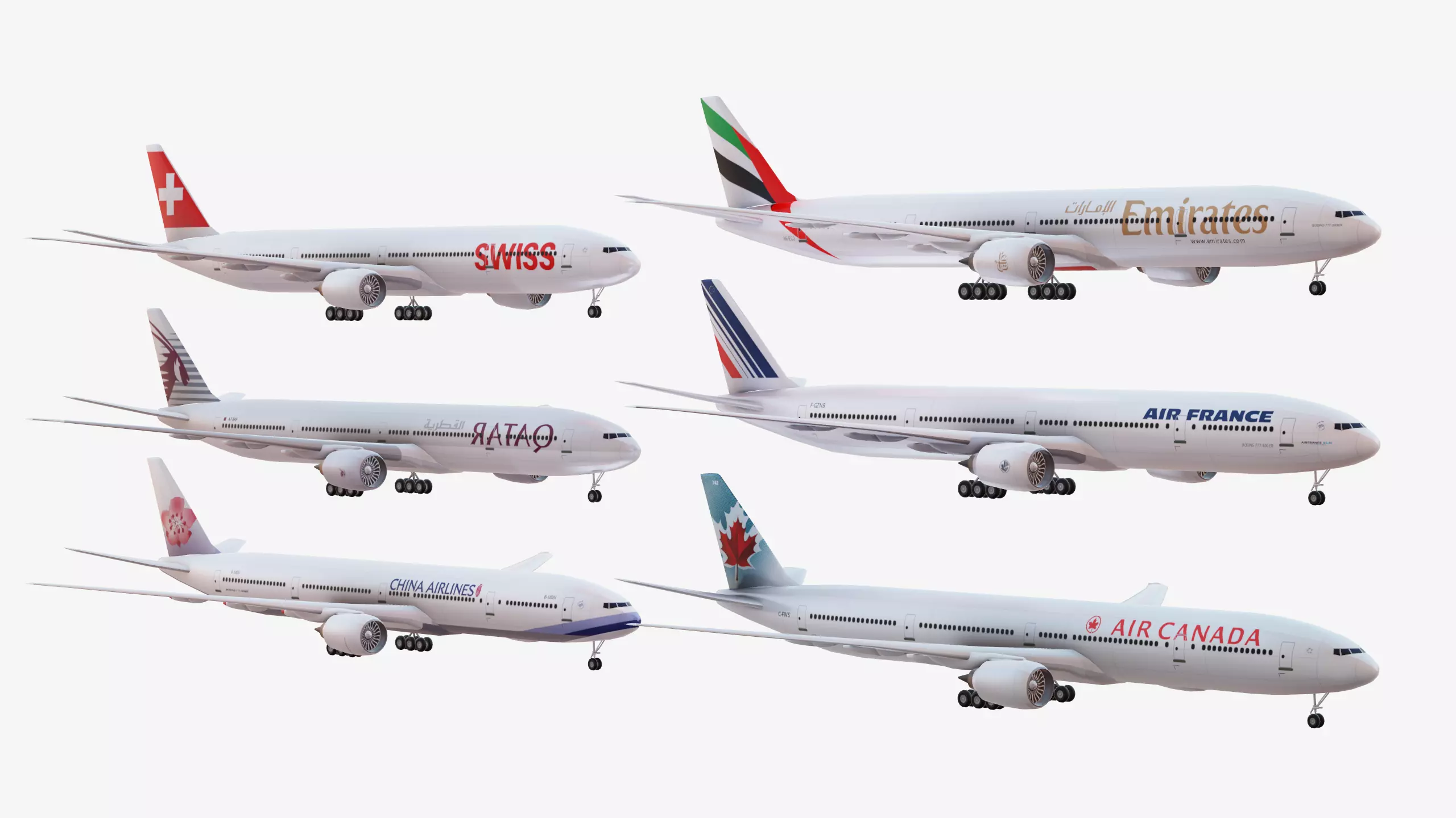 Textures: Swiss, Air France, Canada, Emirates, China, Qatar