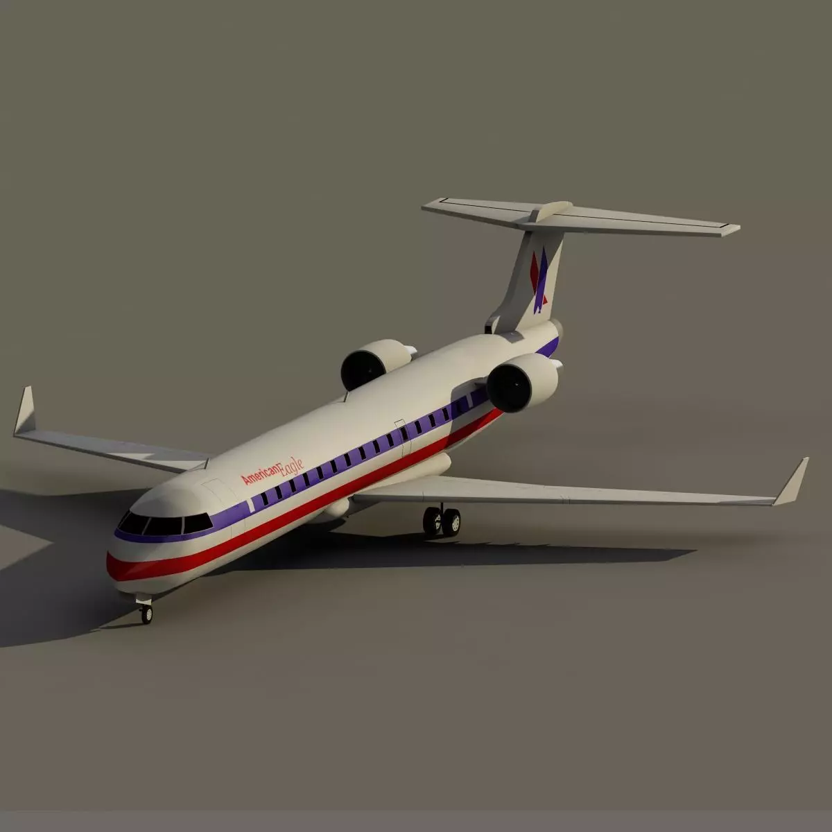 High quality realistic 3d model of CRJ-700 American Eagle.