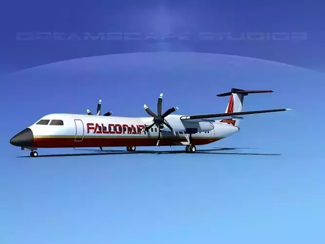DHC-8-400 is built near to scale within a few inches of actual general dimensions and fully textured. It has many animateable features including propellers, ailerons, flaps, rudder and elevators. Landing gear can be retracted and landing gear doors closed. It is provided in several formats.