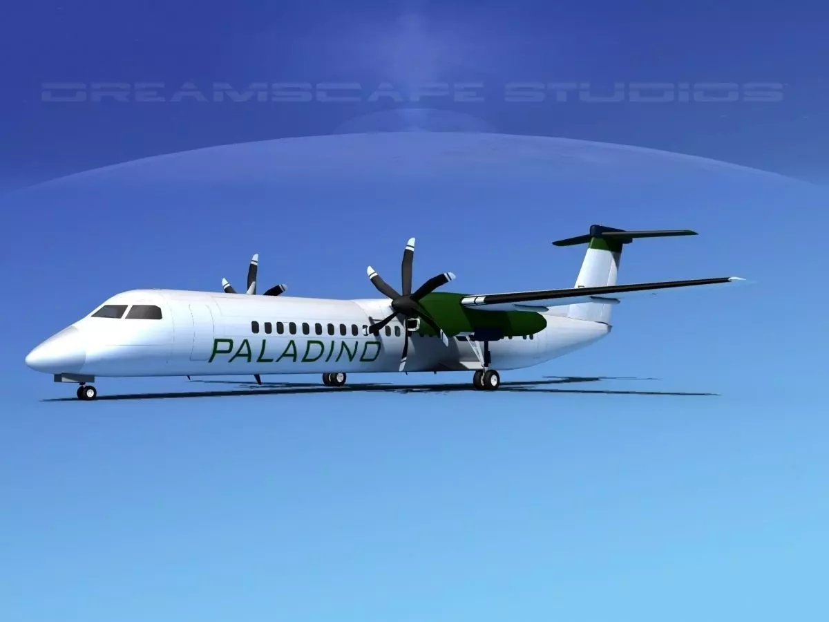 DHC-8-400 is built near to scale within a few inches of actual general dimensions and fully textured. It has many animateable features including propellers, ailerons, flaps, rudder and elevators. Landing gear can be retracted and landing gear doors closed. It is provided in several formats.