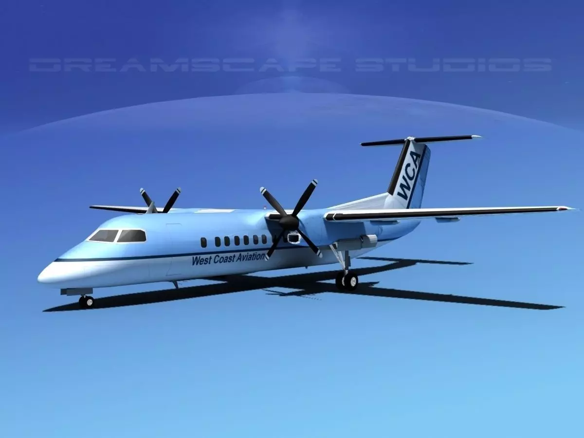 The DHC-8 300 is built very near to scale, within a few inches of actual general dimensions. It is fully textured and fairly detailed and built to be a good animation subject. Many liveries are available. A VBM version without paint and textures is also available. This model comes in a wide range of formats.