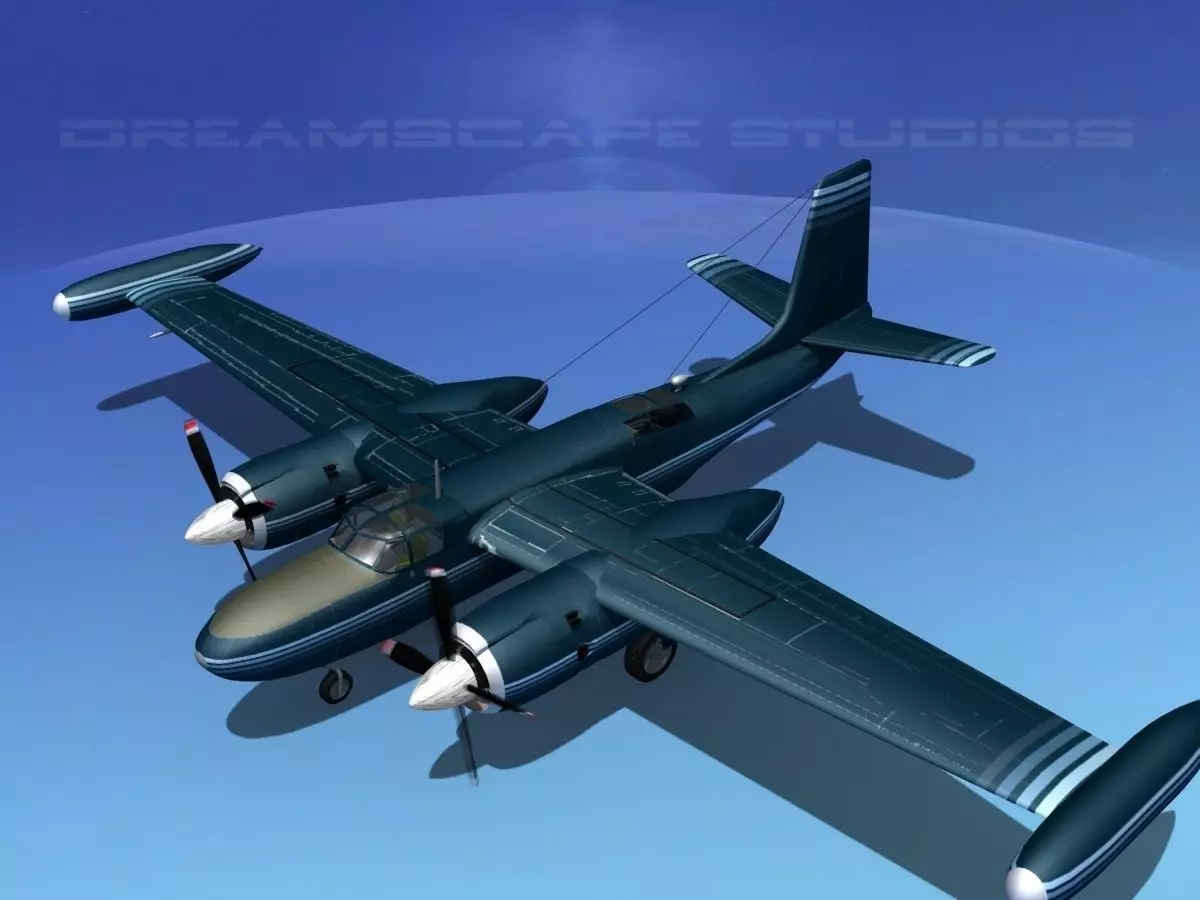 This high poly model is build very near to scale and is within a couple of percent of the actual dimensions. It has a detailed exterior including radio antennas and pitot tubes. Landing gear have been finished with a moderate amount of detail too. Some interior cockpit and rear compartment detail is also modeled and textured. Instrument panels and controls are also modeled and textured. The model is fully textured and the materials and textures are provided as shown. This model uses high res materials and textures. The model geometry is available in several formats. The materials and paint scheme are provided as shown. Engines are modeled including a good amount of detail, the four bladed propeller is animated. Landing gear, landing gear doors, ailerons, elevators, rudder and flaps are all animateable. Wheels and tires are also animateable.
