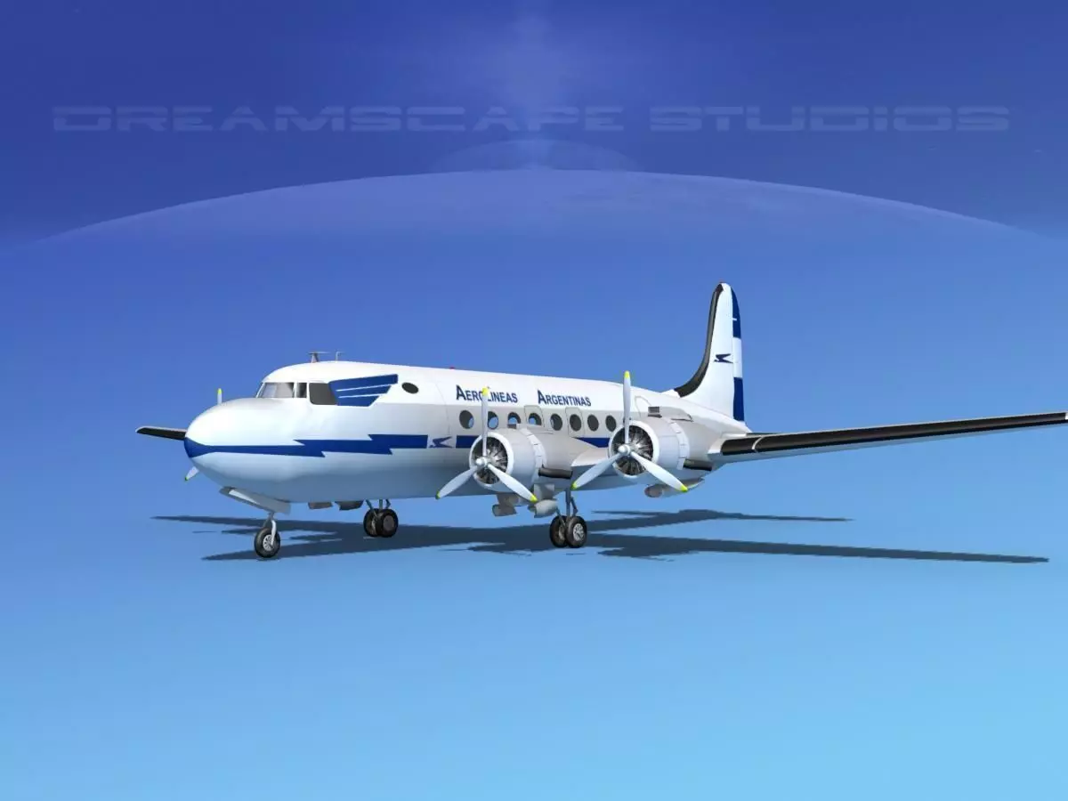 This model is a very detailed medium to high polygon model of the DC-4. It is built fully textured and near to scale. It includes a lot of exterior detail. In addition this model has several animateable features including animateable propellers, flaps, elevators, rudder, ailerons, landing gear and landing gear doors. This model also come with all the textures and materials as shown here and is available in several formats for immediate downloading here.