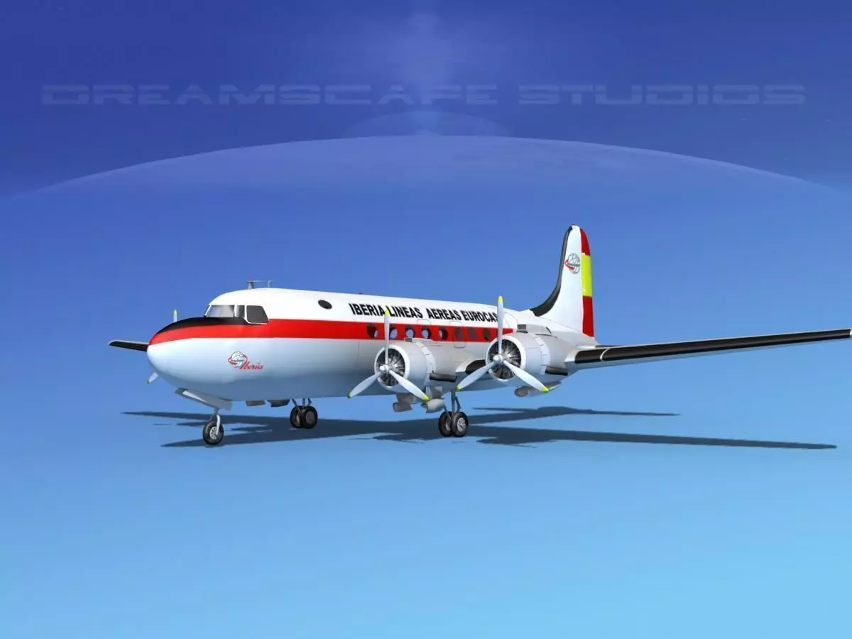 This model is a very detailed medium to high polygon model of the DC-4. It is built fully textured and near to scale. It includes a lot of exterior detail. In addition this model has several animateable features including animateable propellers, flaps, elevators, rudder, ailerons, landing gear and landing gear doors. This model also come with all the textures and materials as shown here and is available in several formats for immediate downloading here.