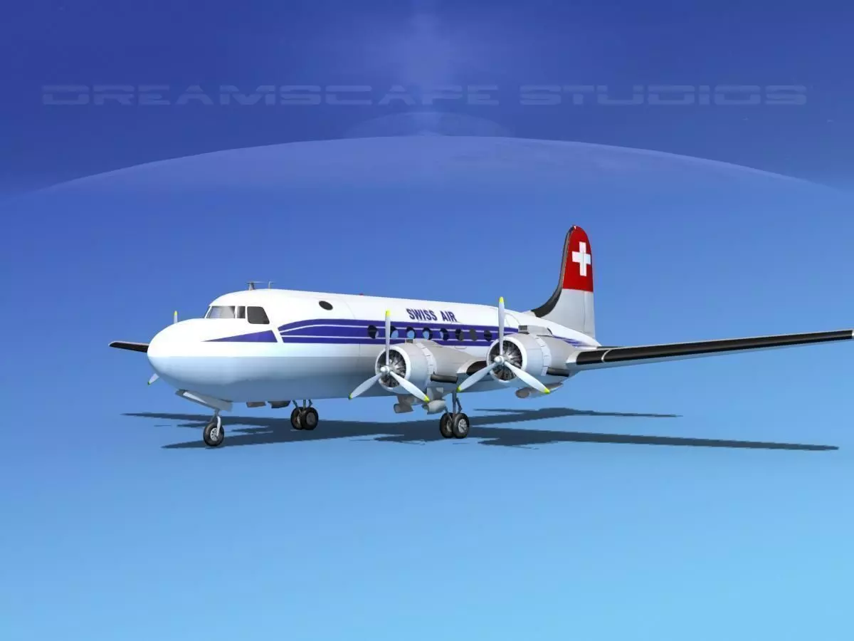 This model is a very detailed medium to high polygon model of the DC-4. It is built fully textured and near to scale. It includes a lot of exterior detail. In addition this model has several animateable features including animateable propellers, flaps, elevators, rudder, ailerons, landing gear and landing gear doors. This model also come with all the textures and materials as shown here and is available in several formats for immediate downloading here.