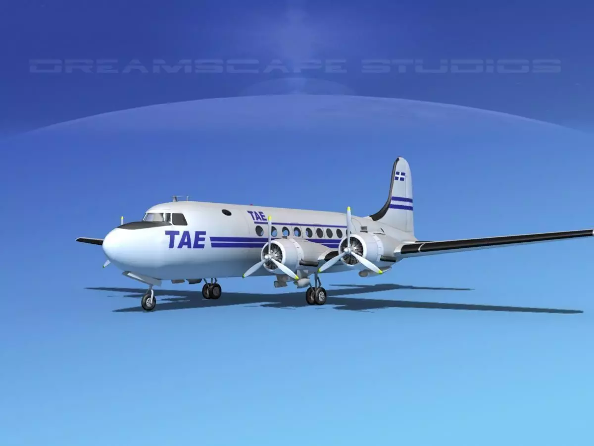This model is a very detailed medium to high polygon model of the DC-4. It is built fully textured and near to scale. It includes a lot of exterior detail. In addition this model has several animateable features including animateable propellers, flaps, elevators, rudder, ailerons, landing gear and landing gear doors. This model also come with all the textures and materials as shown here and is available in several formats for immediate downloading here.