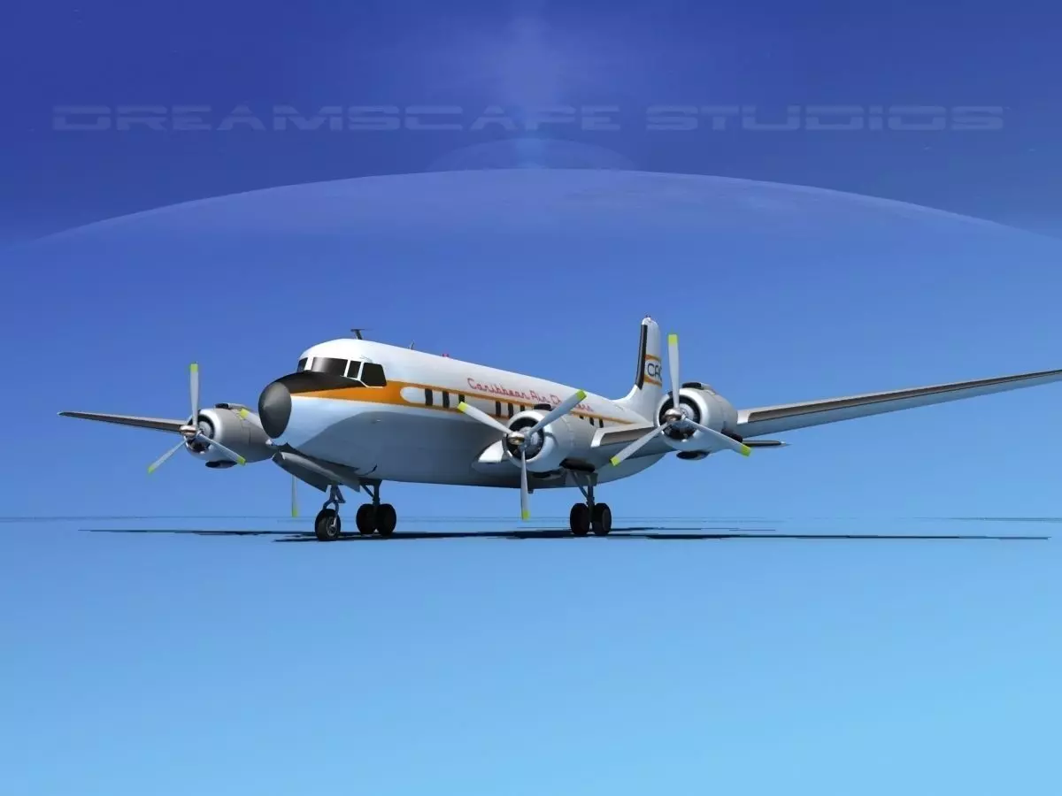 This model was built very near to scale, fully textured and with a good amount of detail. Control surfaces are animateable including flaps, ailerons, elevators and rudder. Landing gear, landing gear doors and propellers are also animateable. A full double row radial engine is modeled in the cowlings and animateable cowling flaps are also modeled. In addition this model comes in a wide variety of formats. The Douglas DC-7 is an American transport aircraft built by the Douglas Aircraft Company from 1953 to 1958. It was the last major piston-engine powered transport made by Douglas, coming just a few years before the advent of jet aircraft.
