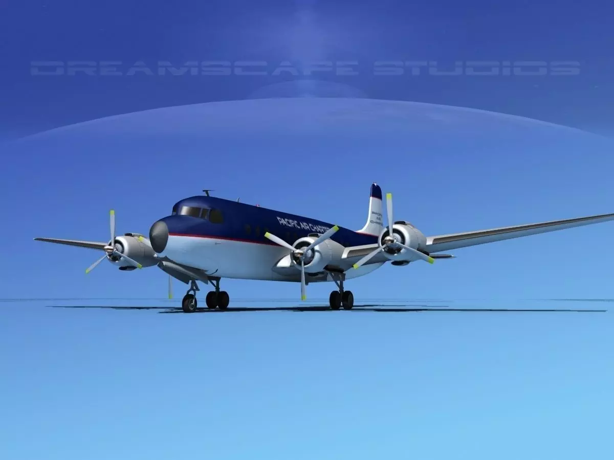 This model was built very near to scale, fully textured and with a good amount of detail. Control surfaces are animateable including flaps, ailerons, elevators and rudder. Landing gear, landing gear doors and propellers are also animateable. A full double row radial engine is modeled in the cowlings and animateable cowling flaps are also modeled. In addition this model comes in a wide variety of formats. The Douglas DC-7 is an American transport aircraft built by the Douglas Aircraft Company from 1953 to 1958. It was the last major piston-engine powered transport made by Douglas, coming just a few years before the advent of jet aircraft.