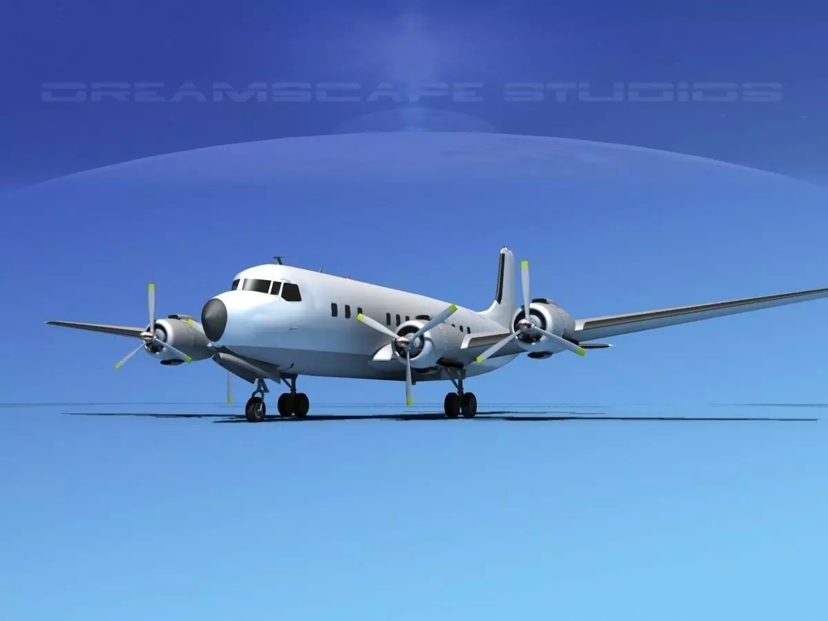 This model was built very near to scale, fully textured and with a good amount of detail. Control surfaces are animateable including flaps, ailerons, elevators and rudder. Landing gear, landing gear doors and propellers are also animateable. A full double row radial engine is modeled in the cowlings and animateable cowling flaps are also modeled. In addition this model comes in a wide variety of formats. The Douglas DC-7 is an American transport aircraft built by the Douglas Aircraft Company from 1953 to 1958. It was the last major piston-engine powered transport made by Douglas, coming just a few years before the advent of jet aircraft.