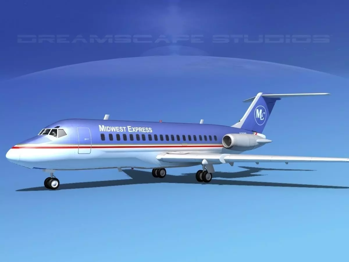 This high poly model is build very near to scale and is within a couple of percent of the actual dimensions. It has a detailed exterior including radio antennas and pitot tubes. Landing gear have been finished with a moderate amount of detail too. The model is fully textured and comes with all materials and textures. In addition this model comes with animateable ailerons, flaps, elevators, rudder, landing gear, landing gear doors and turbines. The model is available in several different formats for immediate downloading here. We are providing the DC-9-20 model in a range of liveries.