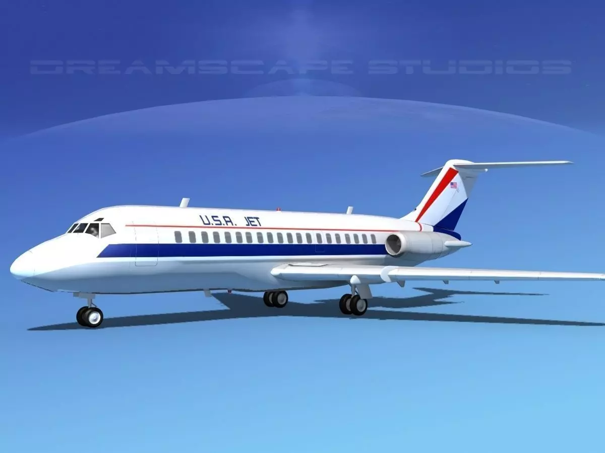 This high poly model is build very near to scale and is within a couple of percent of the actual dimensions. It has a detailed exterior including radio antennas and pitot tubes. Landing gear have been finished with a moderate amount of detail too. The model is fully textured and comes with all materials and textures. In addition this model comes with animateable ailerons, flaps, elevators, rudder, landing gear, landing gear doors and turbines. The model is available in several different formats for immediate downloading here. We are providing the DC-9-20 model in a range of liveries.