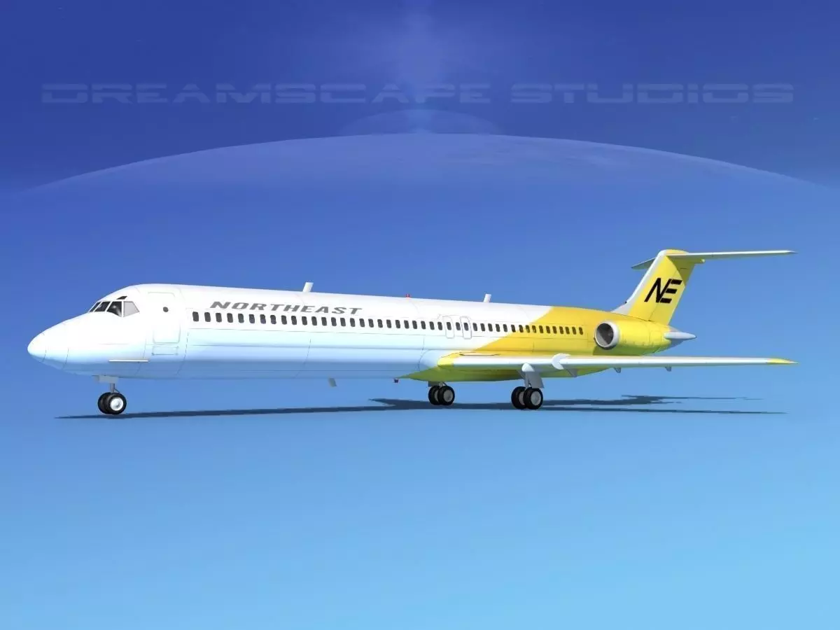 This high poly model is build very near to scale and is within a couple of percent of the actual dimensions. It has a detailed exterior including radio antennas and pitot tubes. Landing gear have been finished with a moderate amount of detail too. The model is fully textured and comes with all materials and textures. In addition this model comes with animateable ailerons, flaps, elevators, rudder, landing gear, landing gear doors and turbines. The model is available in several different formats for immediate downloading here. We are providing the DC-9-20 model in a range of liveries.