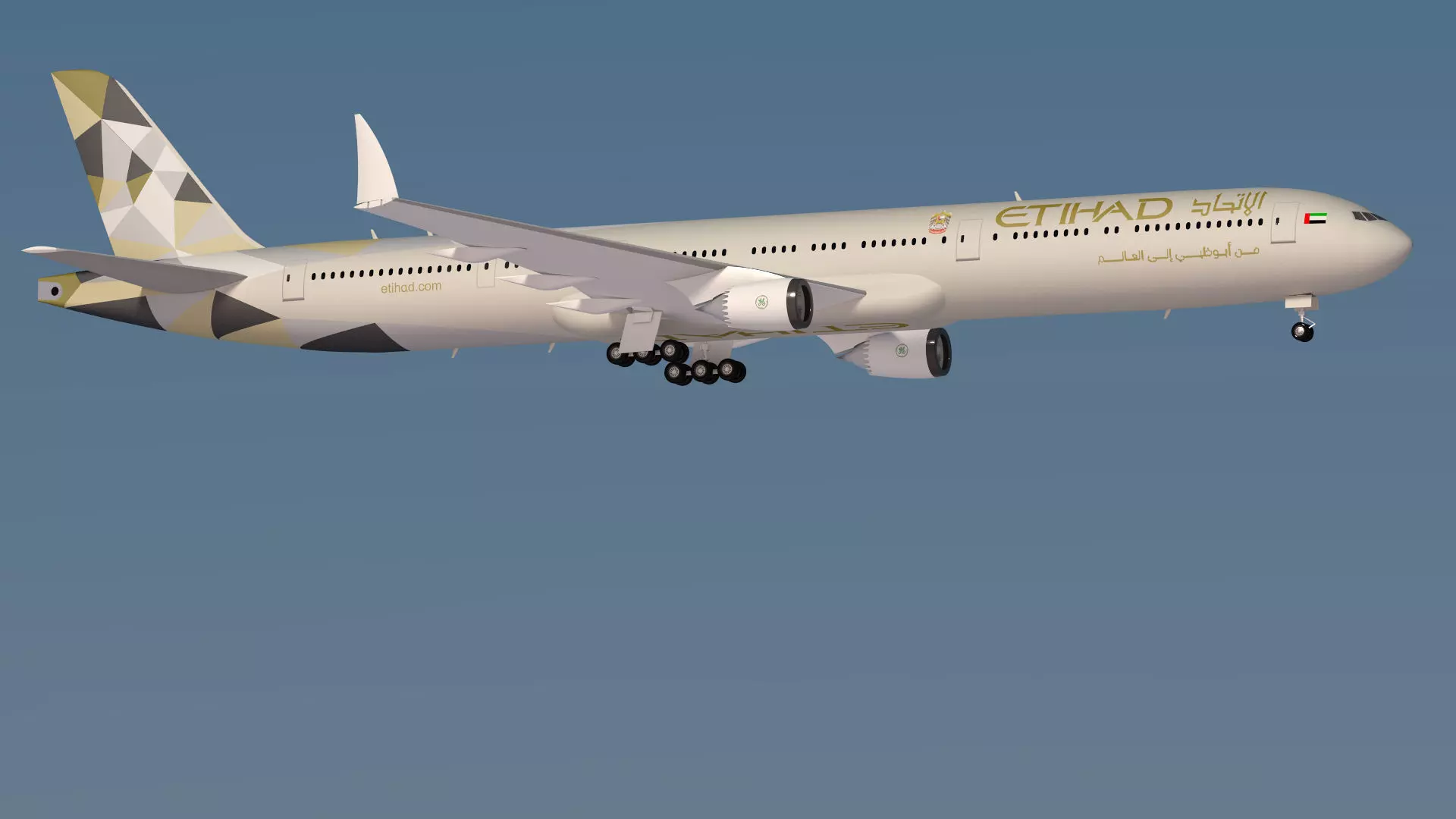 Etihad Boeing 777-9XA scaled realistic model of New upcoming 777-9X exteriorScale 1:25Pivot is set to animate wheels,doors & grouped seperatatlyAll textures includedUV mapped,