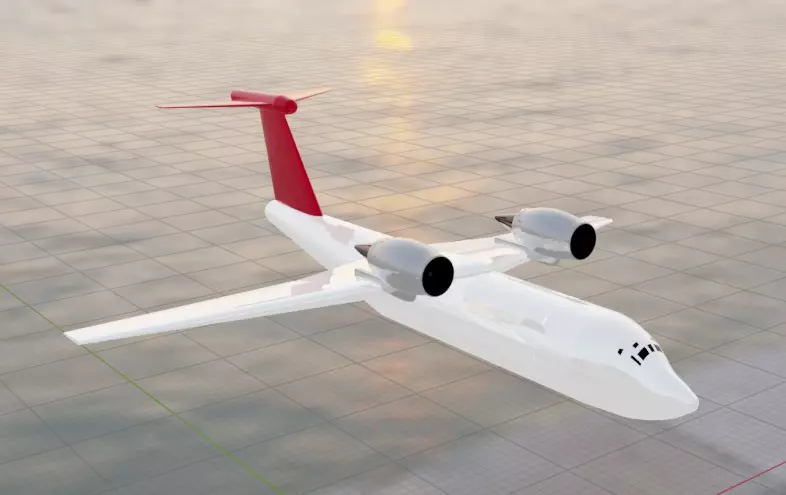 Fictional narrowbody jetliner inspired by the upper wing engine T-tail configuration of classic aircraft such as the An-72A family.