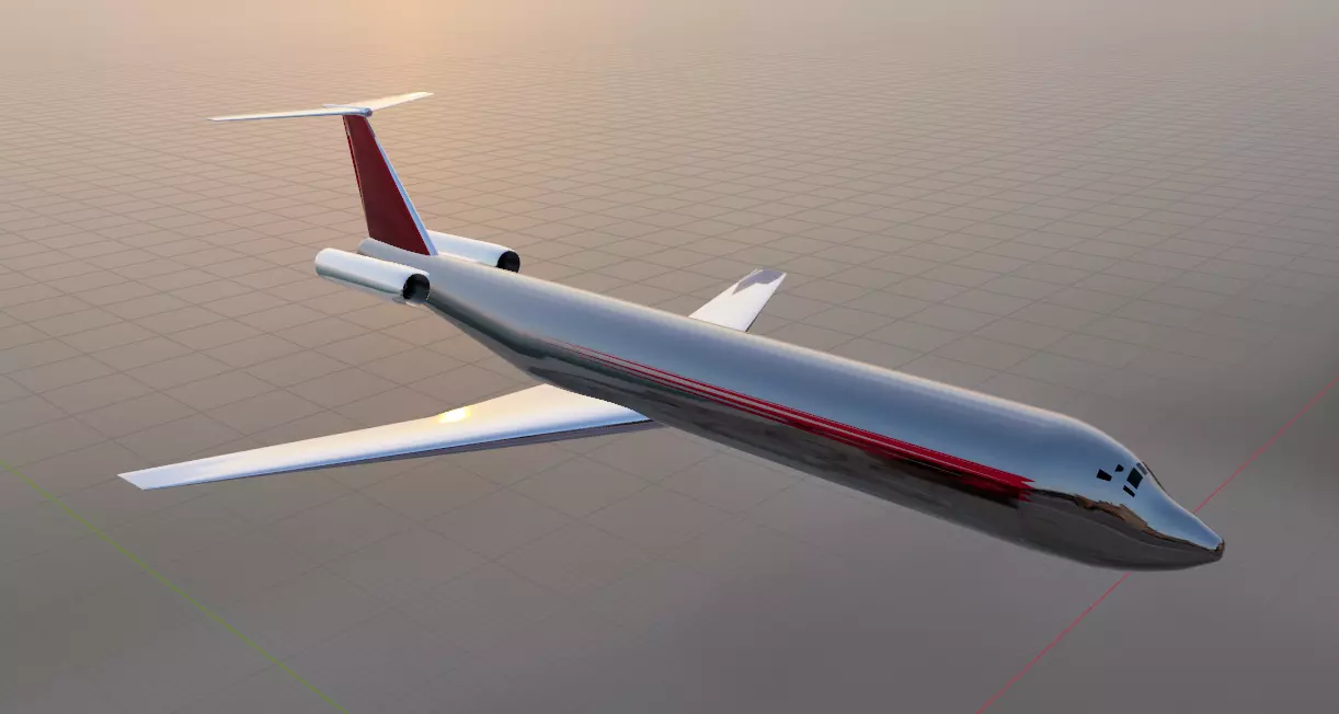 Fictional narrowbody jetliner inspired by the rear engine T-tail configuration of classic aircraft such as the DC-9-50 family.