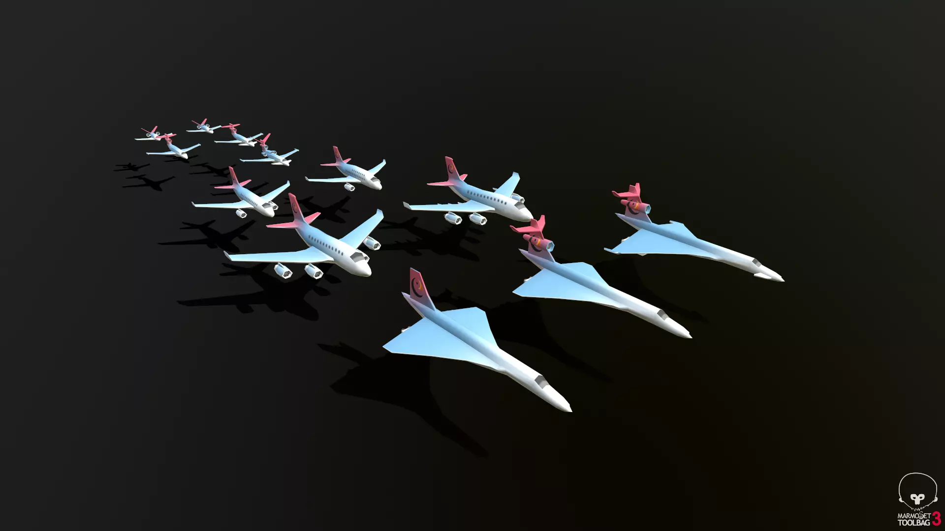 Low poly jet airplanes and their upgraded versions. Many inspired by real airframes used today. Enjoy!