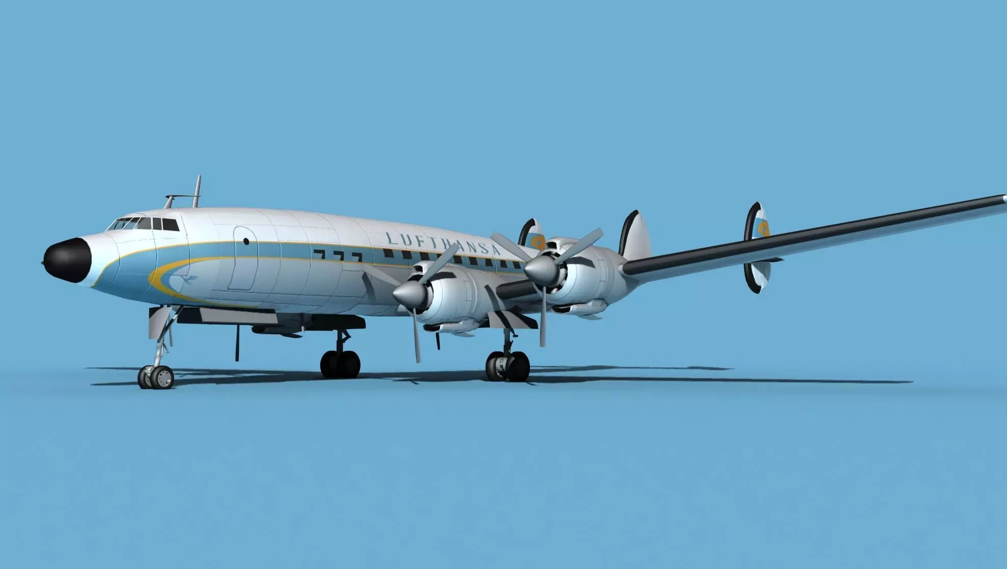 The model was built near to scale in real units and built based on drawings, photos, and other documents. This model has a moderately detailed cockpit and the following animateable features; ailerons, split flaps, elevators, rudder, propeller (is animated), canopy, landing gear, and landing gear doors.These models render very well and look very realistic using good animation and rendering technique. It can be used in an animated or static position within an animation or animated video, or possibly for programming for a flight simulation application. This model was not designed for 3d printing, these are to be used as digital files only. Exporting of models is limited but good for several software applications. This model is fully textured with all materials UVW mapped and applied. Most materials are planar mapped and major materials include texturing. All textures and materials are included as shown. Objects are logically named for ease of scene management.No cleaning up necessary, just drop your models into the scene and start rendering.No special plug-ins are needed to open scene.In most cases the liveries are based on actual service liveries or paint schemes. Many of the units, airlines or countries who flew the plane are represented here. Dreamscape Studios is a US 3d modeling firm specializing in building high definition, accurate, and detailed 3D models of commercial, civilian, and military airplanes, ships, buildings and other subjects.Dreamscape 3d models are built in ultra-low to ultra-high polygon count, (most often) near to scale and include a good amount of detail based on the resolution target. If you have a question, error or problem with the model, let us know and we will do our best to provide or get a solution for you. Be advised our models are not designed for 3d printing unless they are advertised for that purpose.
