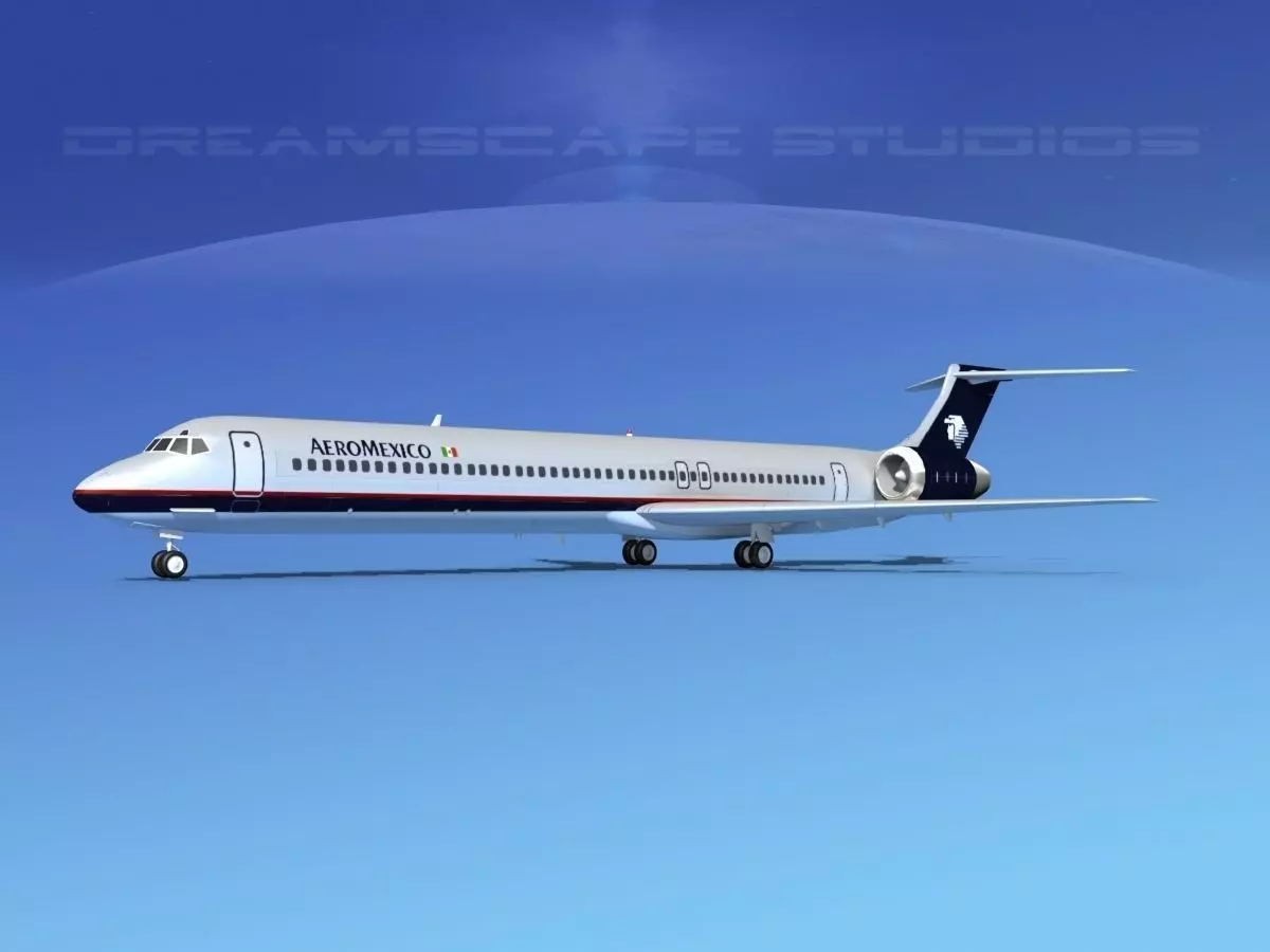 McDonnell Douglas MD83 Aero Mexico This model was originally built in Max 13 near to scale (within 3-4% of scale) and fully textured. It comes with all the materials and textures shown in renderings here.It has a detailed exterior including radio antennas and pitot tubes. Landing gear have been finished with a moderate amount of detail too.