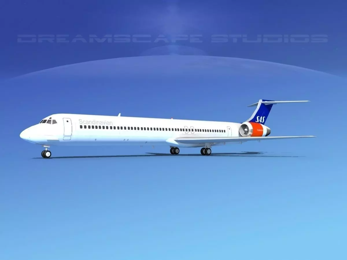 McDonnell Douglas MD83 SAS1 This model was originally built in Max 13 near to scale (within 3-4% of scale) and fully textured. It comes with all the materials and textures shown in renderings here. It has a detailed exterior including radio antennas and pitot tubes. Landing gear have been finished with a moderate amount of detail too. It comes with animateable ailerons, flaps, elevators, rudder, landing gear, landing gear doors and turbines. It is available in several formats for a wide variety of end users. This model comes with many different liveries. It is built to be used in in-flight or airport ground animations and video or simulation. It can also be used to populate an airport scene. MD-83 is a longer range version of the MD-81 basic family model aircraft. It has a greater fuel capacity with two additional fuel tanks and more powerful engines. The -83 also has higher operating weights and it could carry up to 155 passengers and had a range of 2500 miles. The first one was delivered in 1985 and the last was delivered in 1999.