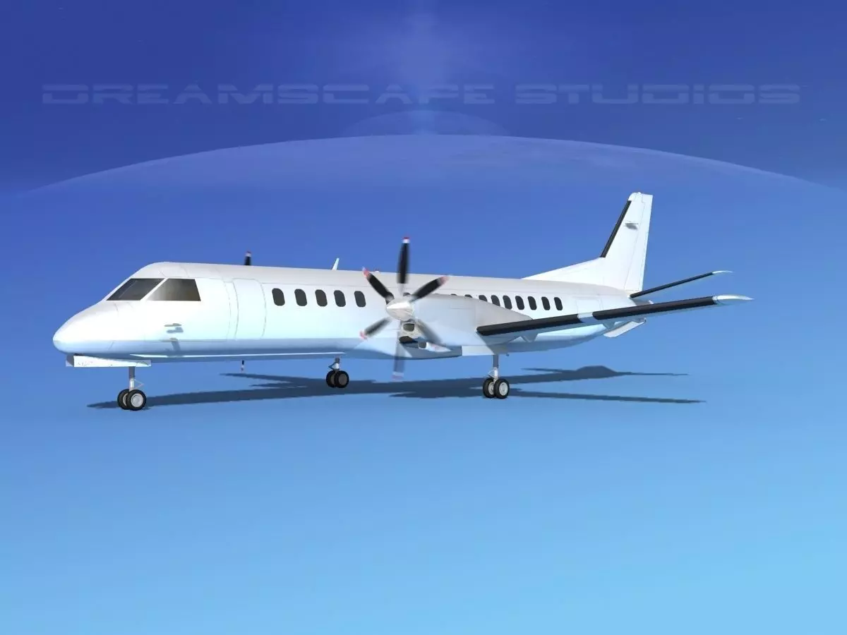 SAAB 2000 Unmarked 2 This model was originally built in Max 13 near to scale, within 3% of general dimensions. It includes a lot of exterior detail and general cockpit modeling. The model is fully textured. This model also has animateable landing gear retraction, flaps, landing gear doors, ailerons, elevators and rudder. Propellers are animated. Tires and wheels are animateable also. It is available in several formats for a wide variety of end users. This model comes with many different airlines liveries. The model is built to be used in in-flight or airport ground animations and video or simulation. It can also be used to populate an airport scene.
