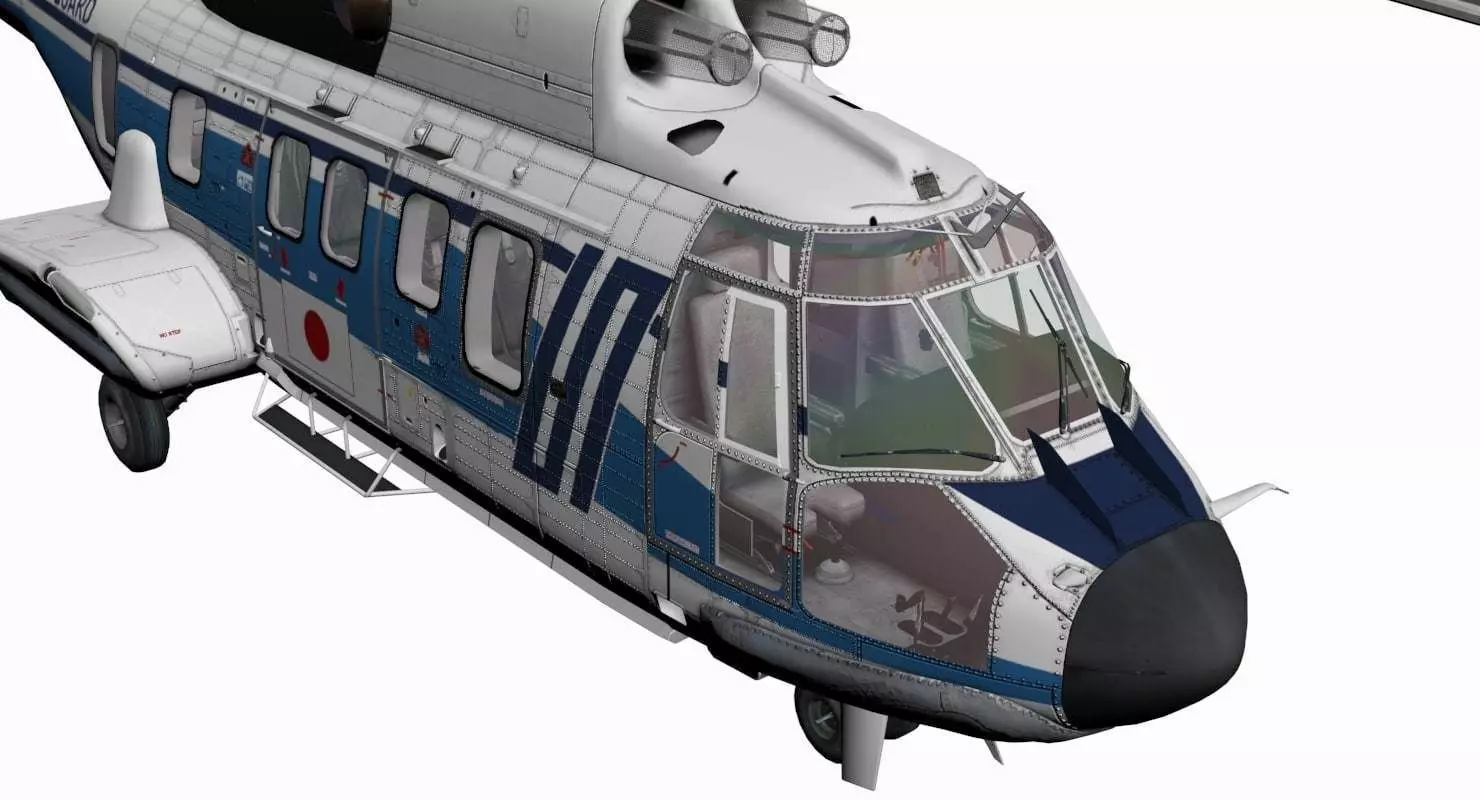 Textured and animated model of the AS332 Mk II Super Puma from Aerospatiale. It is a relatively low polygon model but highly accurate properly scaled to the real world dimensions so it is perfect for games or for realtime 3D engine presentations and showcases. The panels, instruments and gauges are modeled authentically according to real flight manuals. But simplified low polygon panels are also included on separate layer for higher fidelity. Simplified extra low-polygon models are also included on a layer for building up mesh collides in game engines for fuselage, interior and doors. Collider mesh pivots matches with the position and orientation of the visual parts they represent.