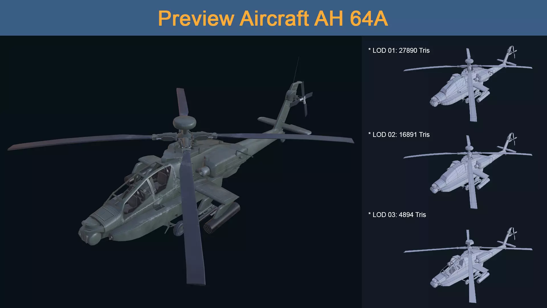 Asset - Army - Aircraft AH 64A - 3D MODEL Low-poly Low-poly 3D model