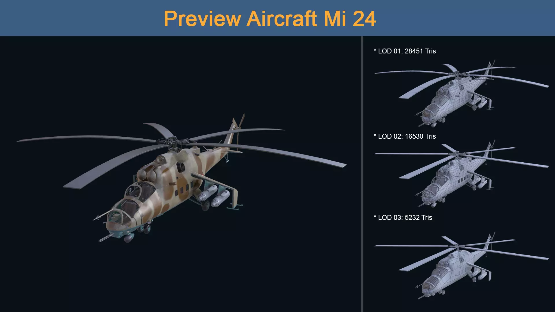 Asset - Army - Aircraft - Mi 24 Low-poly 3D model