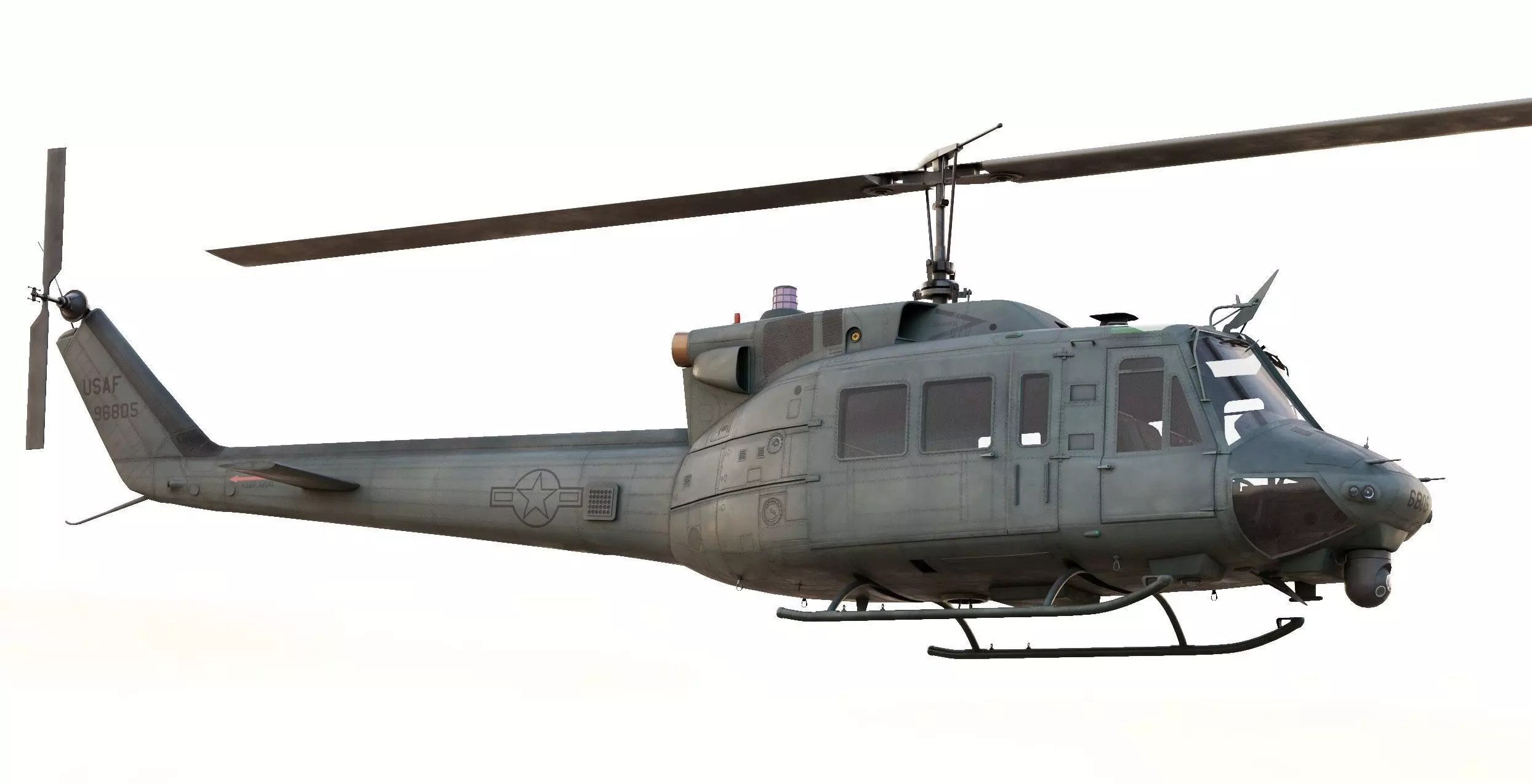 Professional-grade 3D model of the iconic Bell UH-1N Iroquois CH-135 Twin Huey USAF helicopter, meticulously crafted from authentic blueprints with exceptional attention to detail. This comprehensive model features both exterior and interior components, making it perfect for close-up renders, animations, and interactive applications.