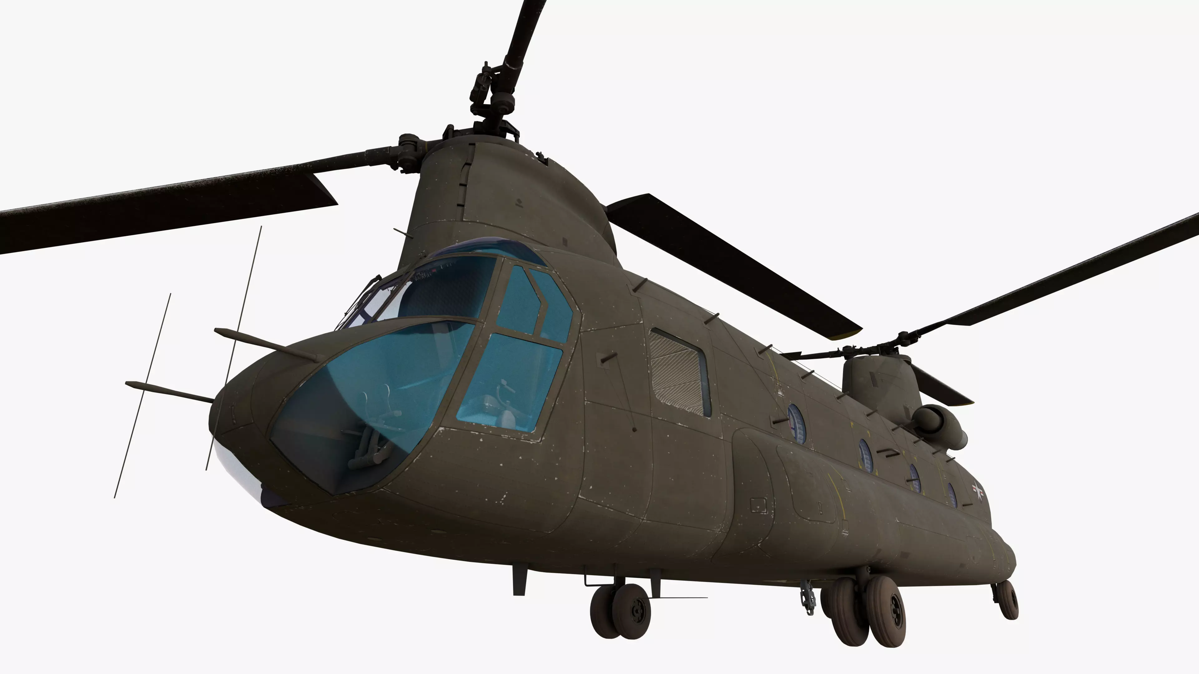Model includes Cockpit with instruments and buttons, Interior cargo area,detailed rotors and landing gear, doors and hatches are openable and all objects named appropriatly.