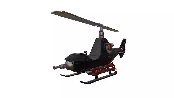 A compact, agile aerial attack vehicle featuring twin rotor blades and forward-mounted weaponry, designed for rapid deployment and air superiority.