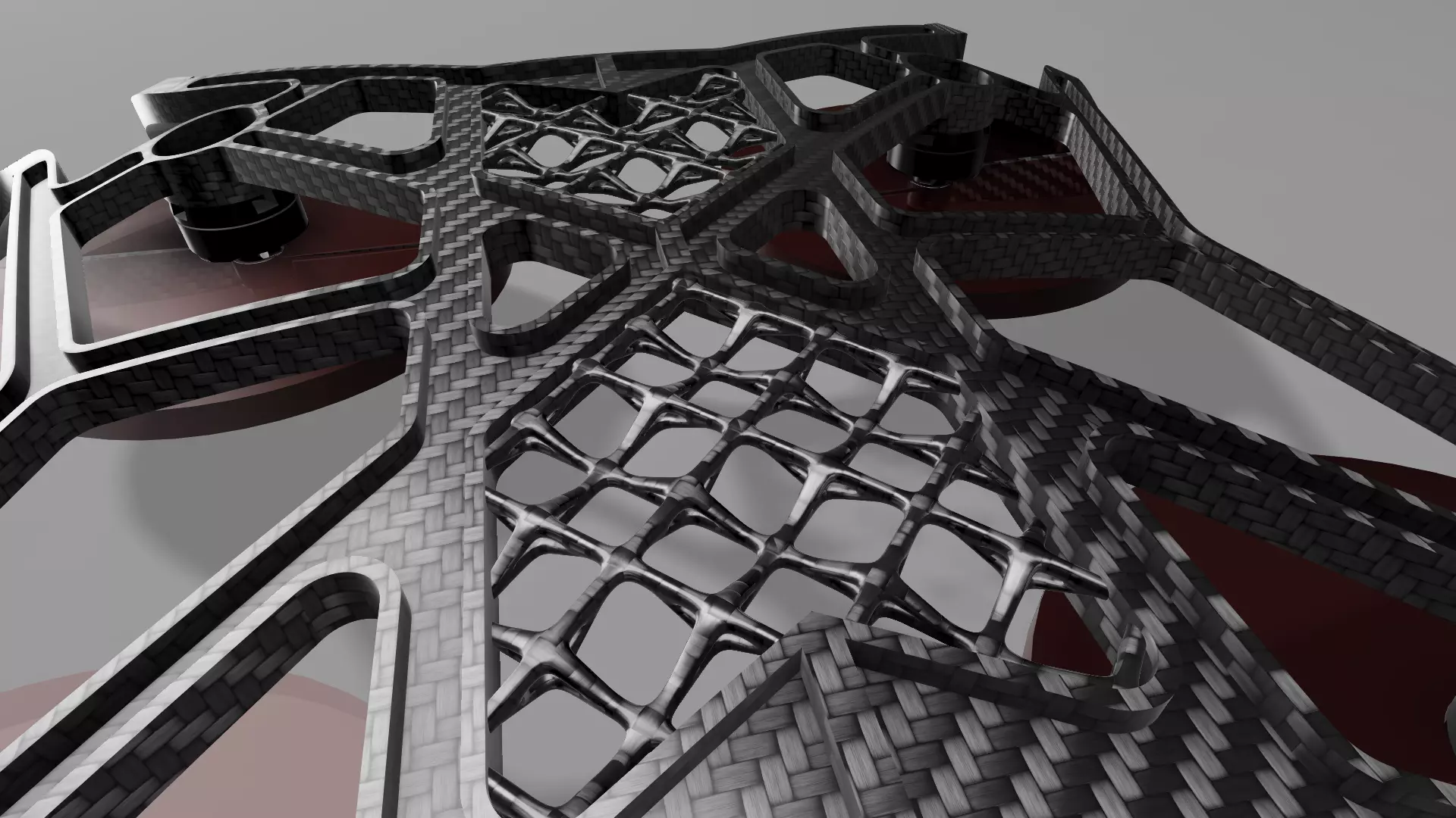 This model provides the fully functional and suitable industrial chassis required for drones.DRONE COMPONENT LIST:4 motors (DYS 2250-2750 KV) 25 g/motorsFlight controller 5 g(2) 4S 3.66 Ah LiPo batteries 105 g eachESC*4 15 gController RX Module/reciever 10 gFPV Camera/Servo 30 gVideo TX Module 8 gESTIMATED MASS:Drone Chassis mass>Equipment Weight ( Camera + FC+ FPV camera+ Video>AAD ( average amp draw )The maximum discharge of the battery>Power to lift 1>Now by using the>Thrust ratio at 100 % throttle:As the total mass of the drone is 489 gFrom the DYS 2250-2750 KV data chart …. At 100% throttle for 4S battery at operated voltage of 14.8,Thrust for a 5*4*.5 STD propeller length by motor is 965.47 gTherefore for all four propeller thrust>Therefore the>