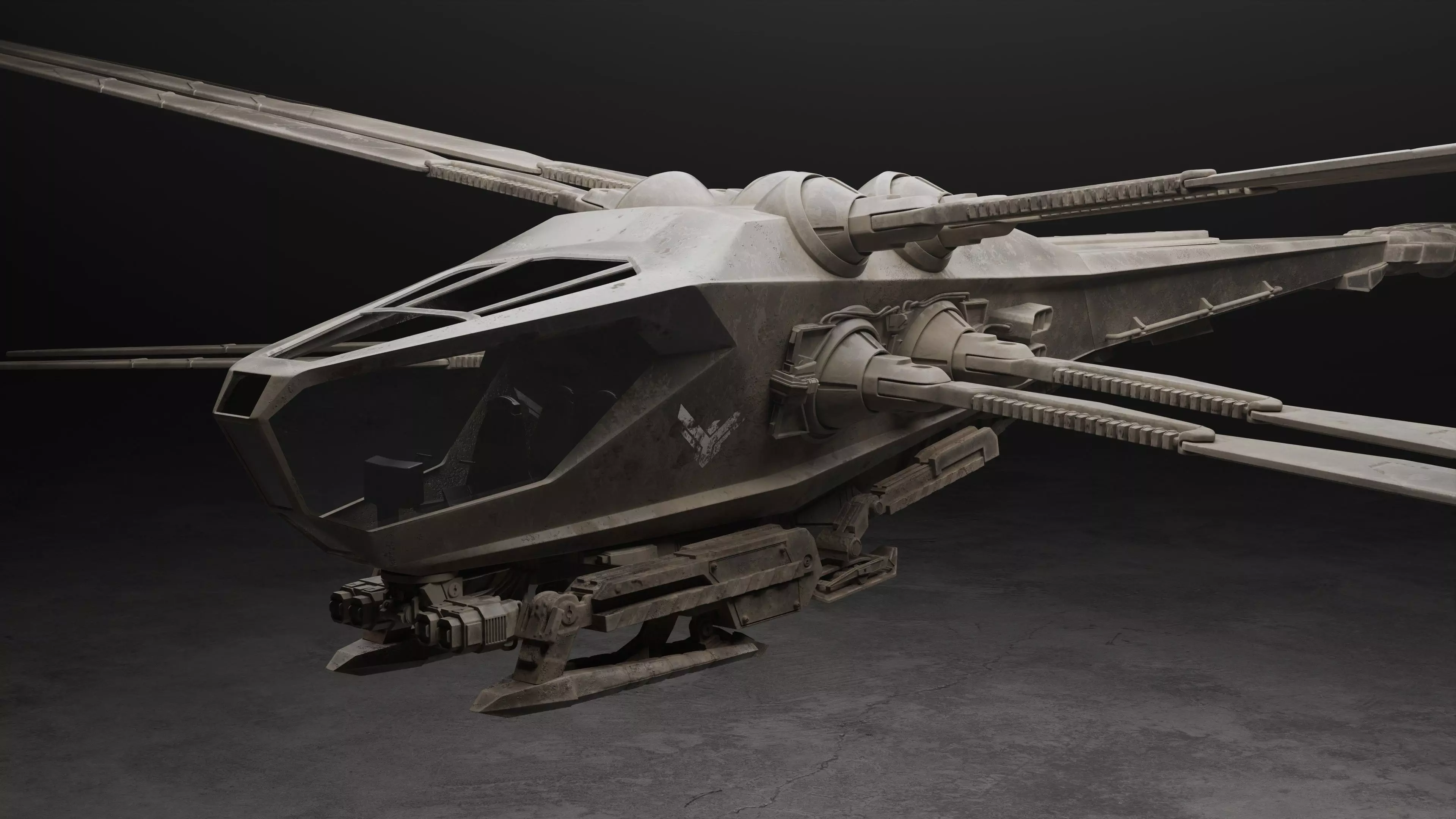 I created a massive reference board and this model took me 23 hours to get to this stage, all quads. unwrapped and ready to go! I think it could be the most accurate Dune ornithopter out there apart from the original.