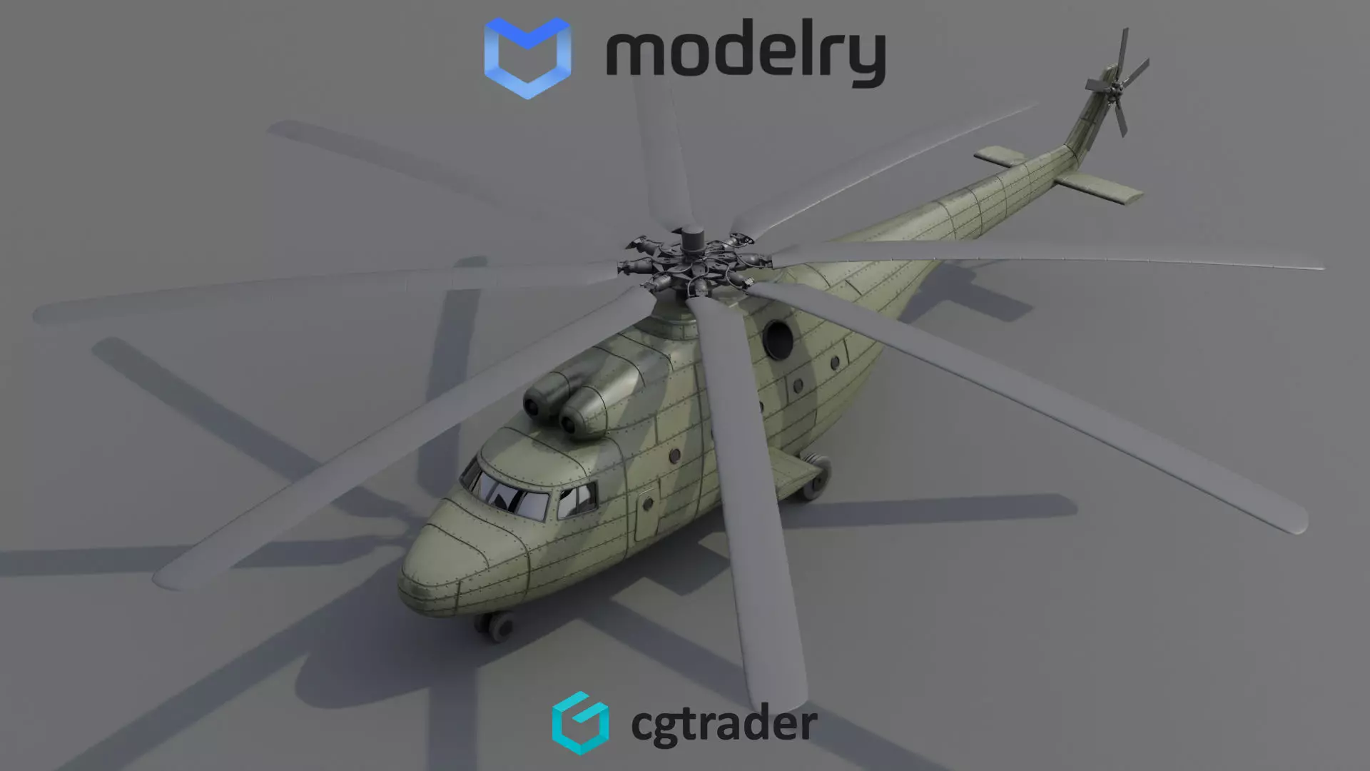 A heavy-lift helicopter in a camouflage pattern, with a rugged design and powerful engines, tailored for heavy-duty missions in the contemporary world.