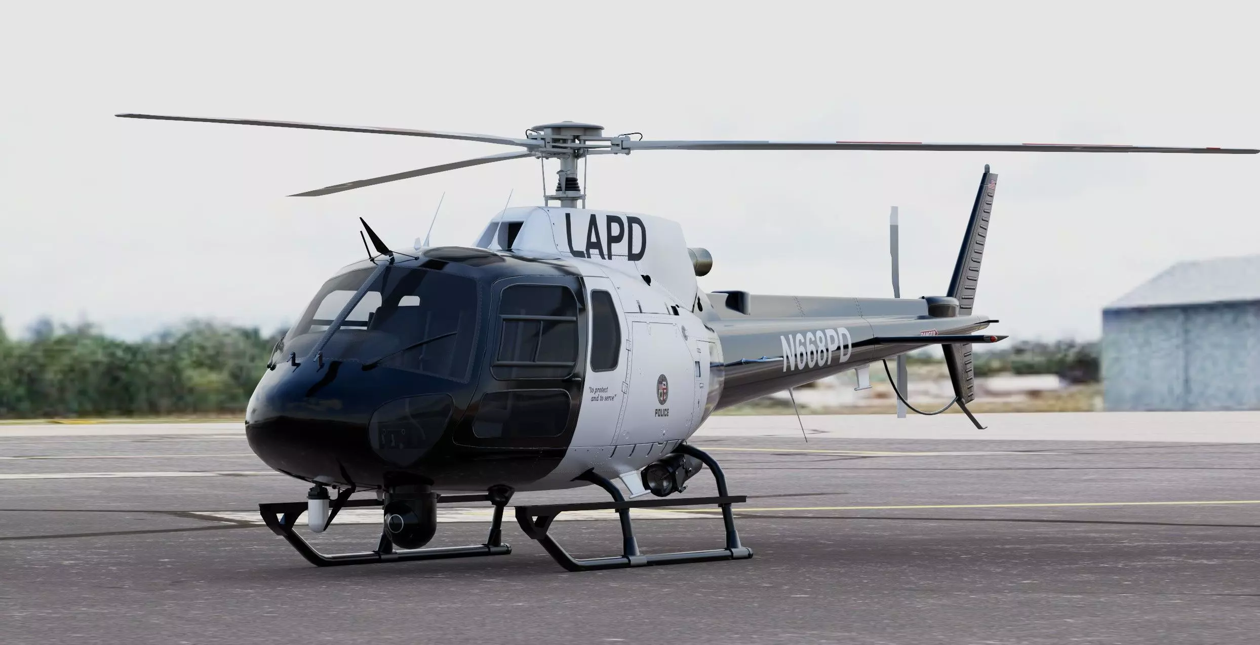 High detailed 3D model based on real Eurocopter AS350 Ecureuil II built from a blueprint and modified for Police package version.