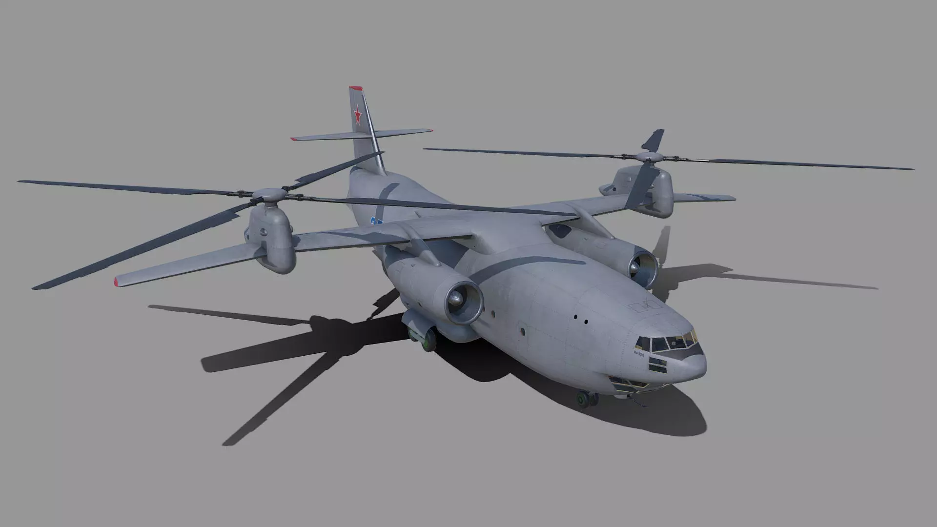 In 1967, the Kamov Design Bureau proposed a project for the Ka-35D transport rotorcraft, intended to work in tandem with the An-12D aircraft. With a takeoff weight of 71.500 kg, it could carry up to 11 tons of cargo for a distance of up to 700 km (maximum - 800 km) with a cruising speed of up to 500 km / h. Its carrying capacity reached 20 tons, and the maximum design speed was 500-550 km / h. On the Ka-35D, two turbojet engines were used with a rotor drive with overlapping disks of rotating blades. The rear cargo hatch ramp was used for loading and unloading equipment. In the nose of the mobile unit there was a remote-controlled cannon.