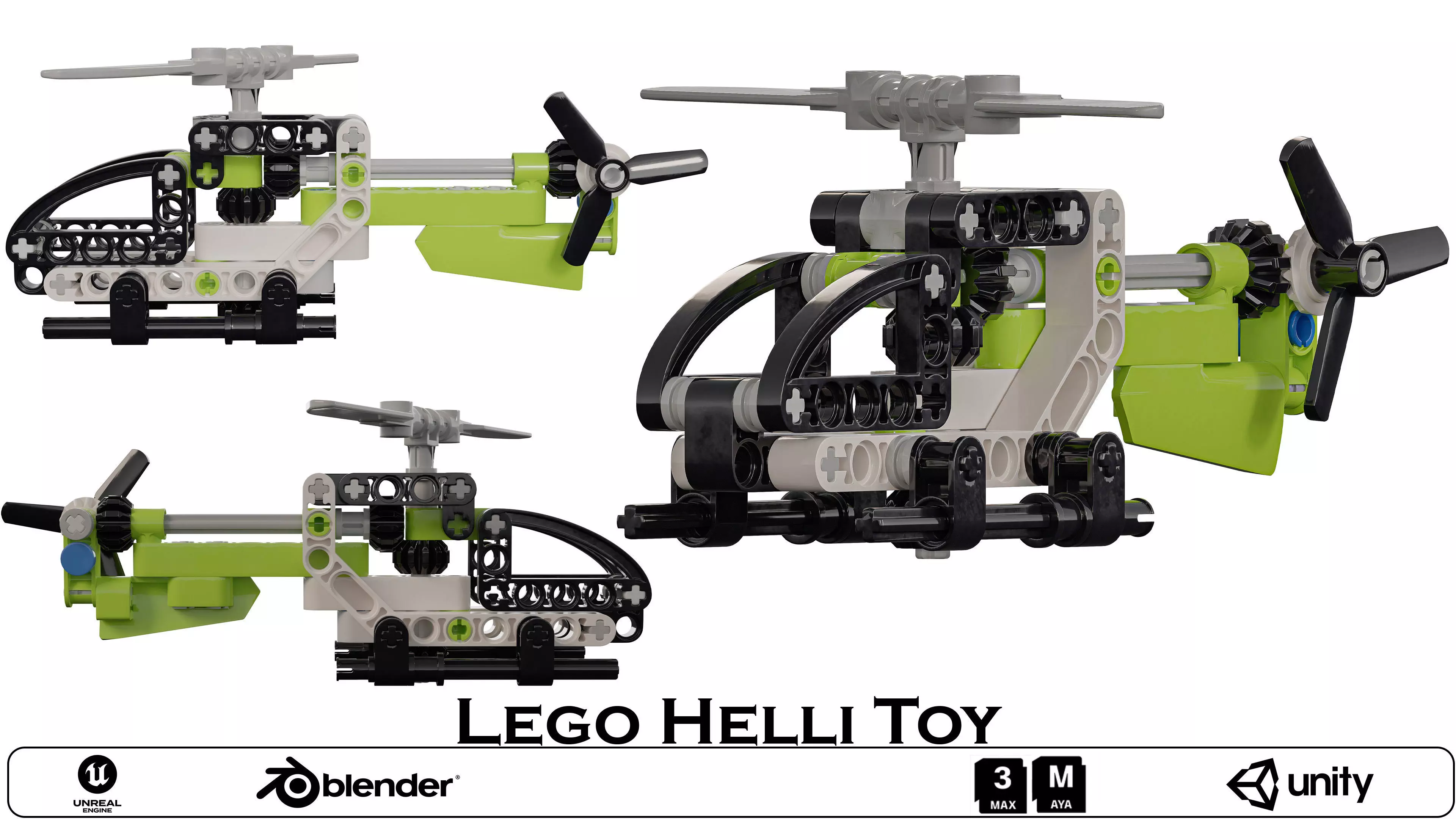 Name: Lego Toy Stylized Brick HelicopterType: modelFormat: 3Ds Max 2013Export: FBX, OBJRender: VRay (5.x), Corona (6)Polys: 146694Verts: 73108Matclasses: VRayMtl,CoronaMtlUnits: CentimetersDimension: 122.7 x 152.76 x 64.8Date: 2026.2.22Bring mechanical charm and playful construction‑set style to your digital scenes with this Lego Helli Toy 3D model. Built in a LEGO‑inspired Technic aesthetic, the helicopter features a detailed rotor system, tail rotor, structural beams, and a colorful mix of black, white, gray, and lime‑green parts. The model is presented from multiple angles to showcase its clean assembly and stylized proportions.