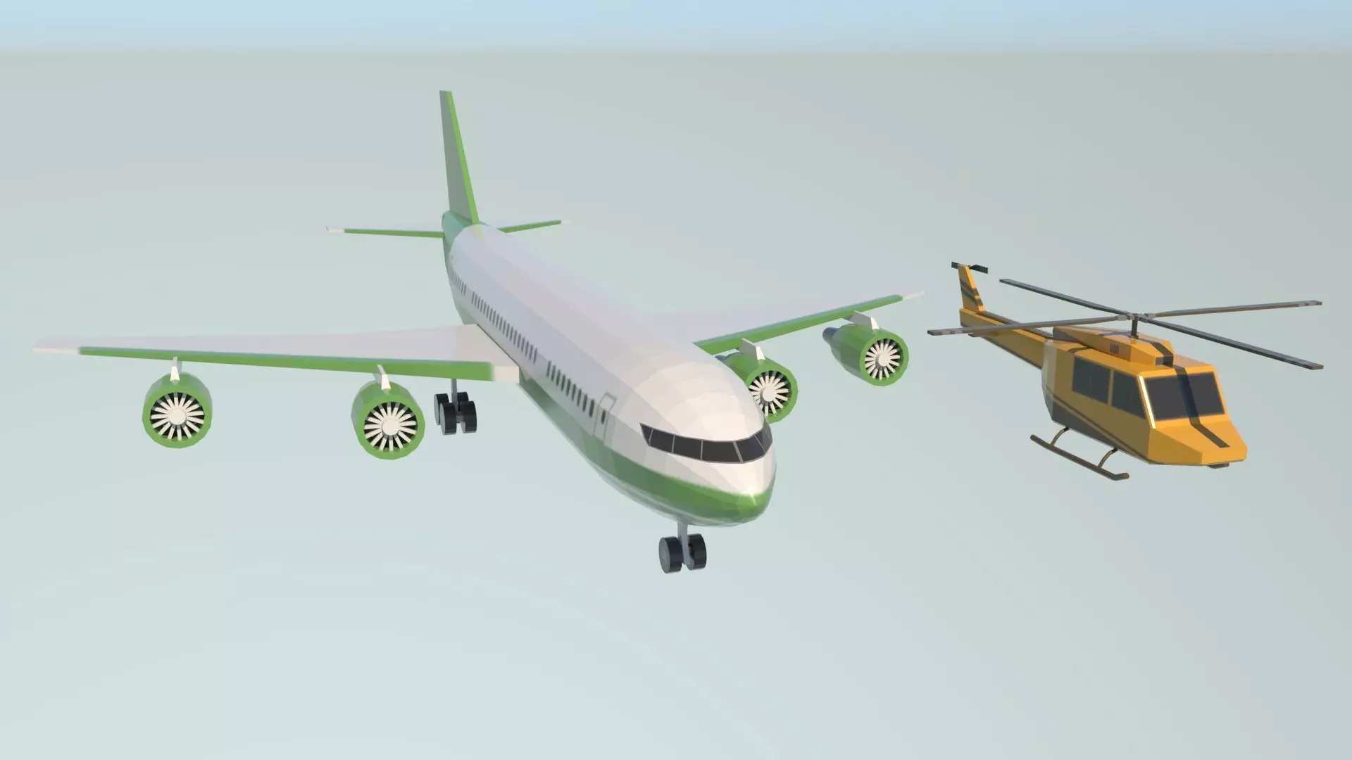 low poly airplane and helicopter 3D model