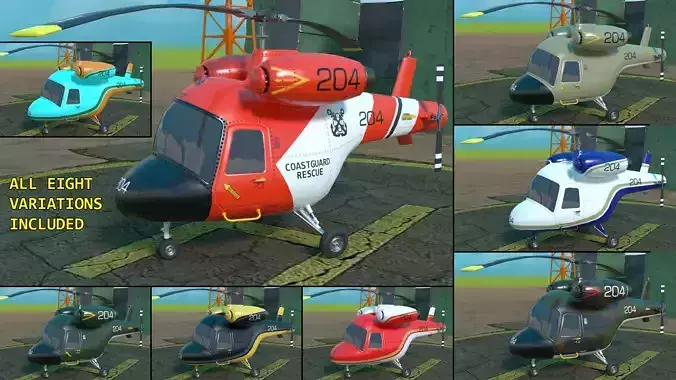 Rigged cartoon helicopter Low-poly 3D model