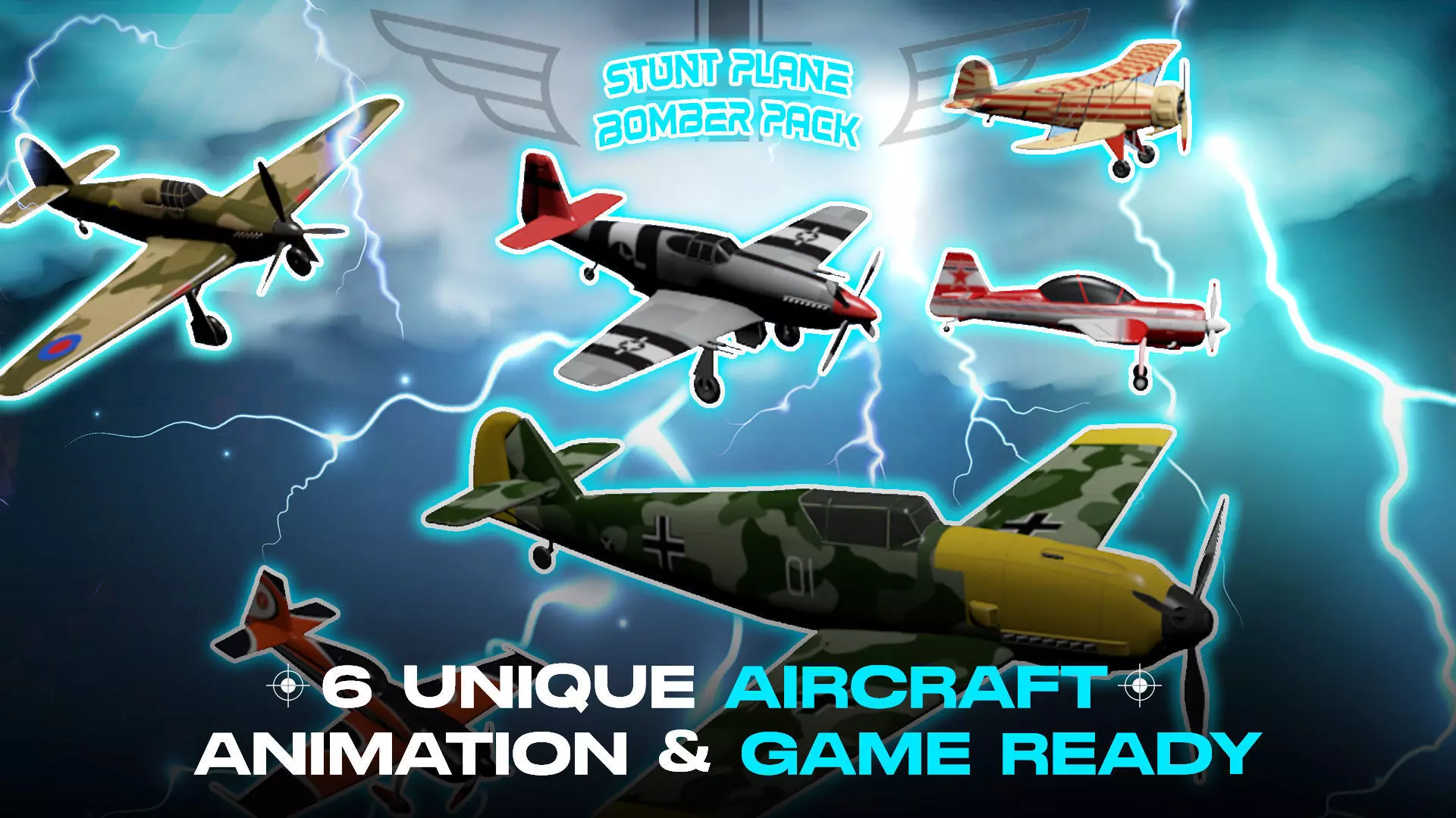 6 Stunt Planes and WW2 Bomber Pack Low-poly 3D model