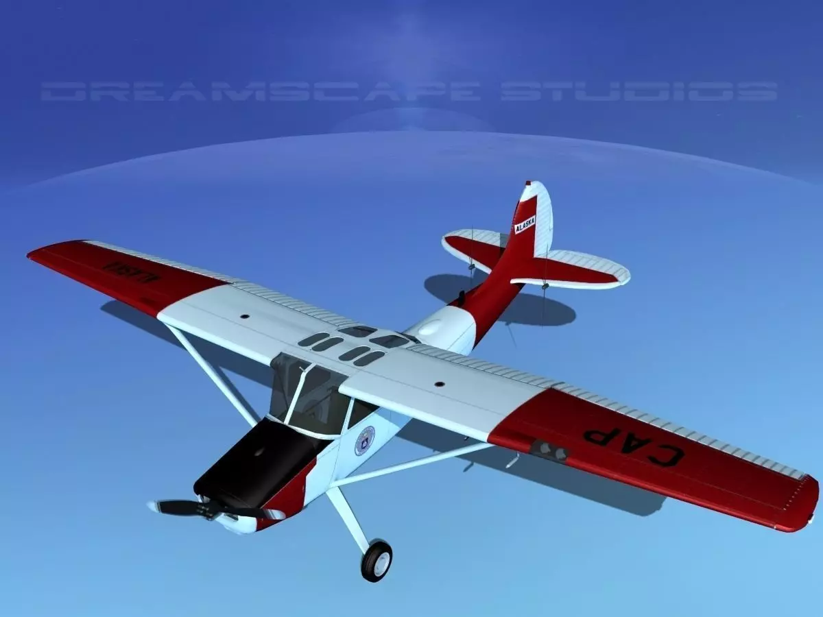 Cessna O-1E L-19 Civil Air Patrol Alaska This model was originally built in Max 13 near to scale, within 3% of general dimensions. It has a good amount of exterior detail and a moderate amount of cabin detail. The model has animated propeller and animated control surfaces including ailerons, flaps, elevators, rudder. The wheels may also be animated. This model also has animateable landing gear retraction, flaps, landing gear doors, ailerons, elevators and rudder. It is available in several formats for a wide variety of end users. This model comes with many different liveries. It is built to be used in in-flight or airport ground animations and video or simulation. It can also be used to populate an airport scene.