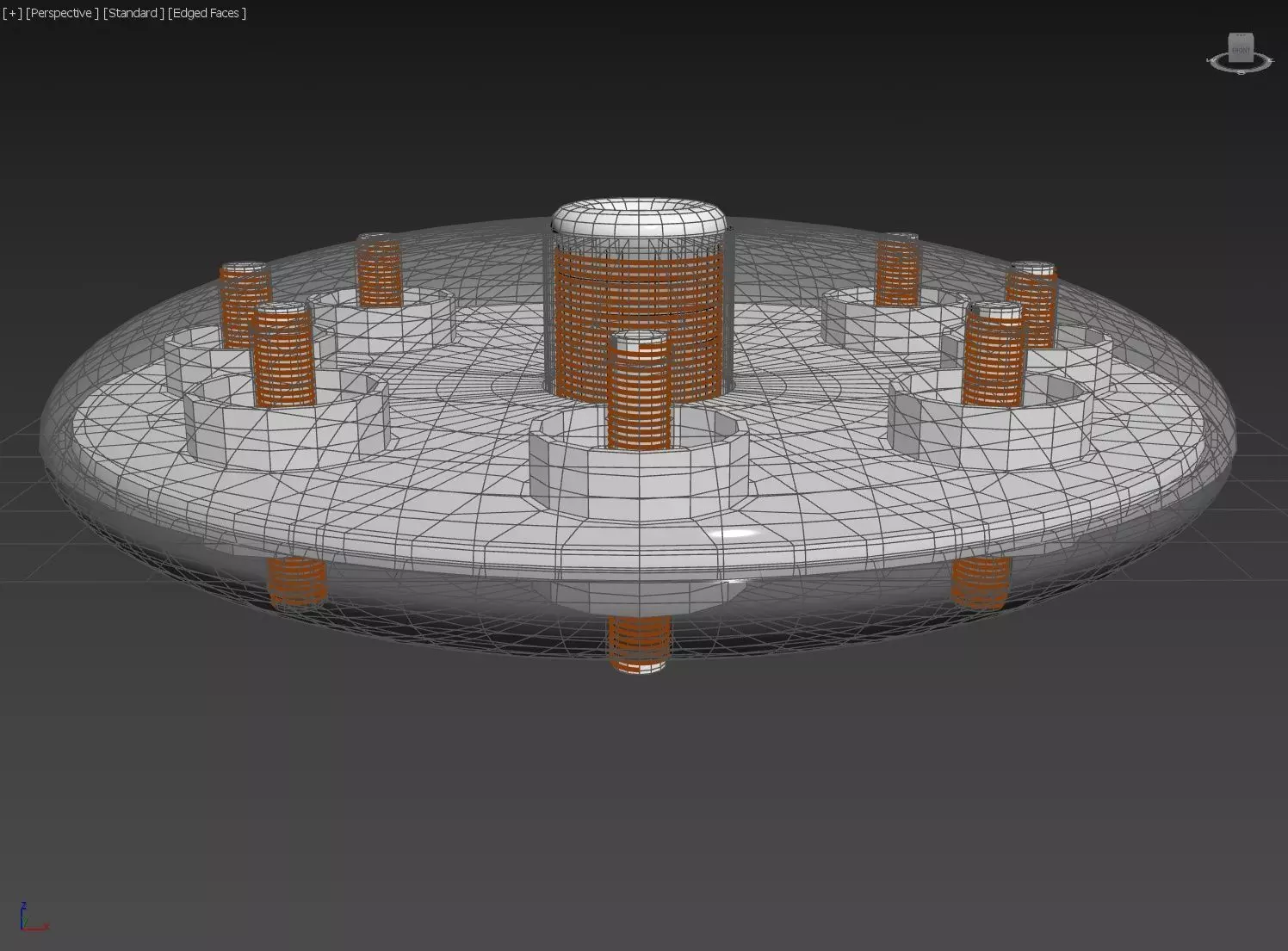 1x central stator 2x vibratory hull capacitor / micro compressor.8x solenoid pairs = 16x solenoids mounted on stator.the must be esc controlled, like a drone. the [micro] compressions of the crafts outer hull create electro mechanical micro waves around in/out the crafts hull resulting in a net lift gain.