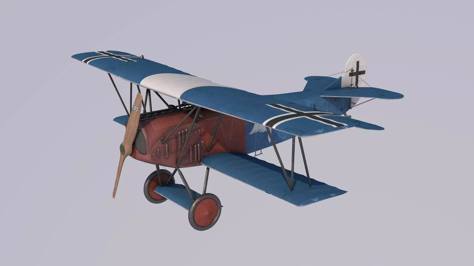 The Fokker D.VII was a German World War I fighter aircraft designed by Reinhold Platz of the Fokker-Flugzeugwerke. Germany produced around 3,300 D.VII aircraft in the second half of 1918. In service with the Luftstreitkräfte, the D.VII quickly proved itself to be a formidable aircraft. The Armistice ending the war specifically required, as the fourth clause of the Clauses Relating to the Western Front, that Germany was required to surrender all D.VIIs to the Allies. Surviving aircraft saw much service with many countries in the years after World War I. High poly, ultra detailed 3D model with full interior, MGs and engine modelled. This specific aircraft was the personal mount of WW1 ace Rudolf Berthold.