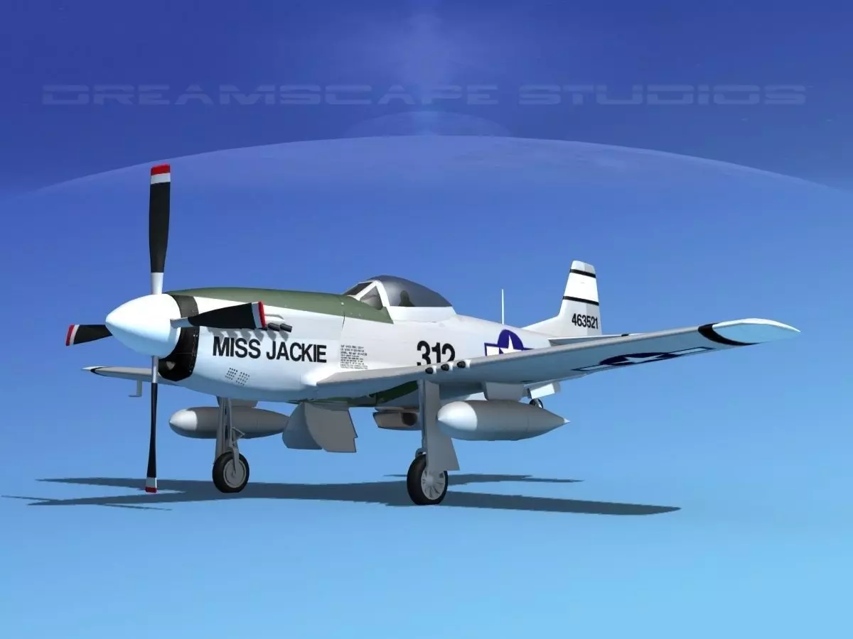 This Mustang model was originally developed for the Discovery Channel. It is built very near to scale and is fully textured. This model is detailed to include cockpit. The engine, cowlings, mounts, seat and radio equipment are modeled. Controls, instrument panels and many cranks and switches are modeled in the cockpit. Many features are animateable including ailerons, flaps, rudder, elevators, main and tail landing gear and doors, propeller, and the cockpit canopy opens.