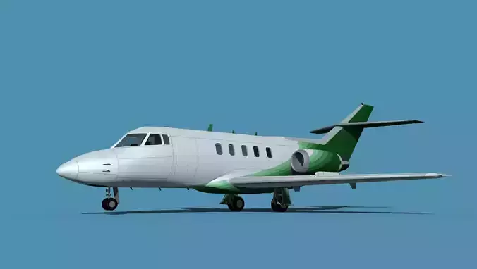 Originally the BaE 125 was developed by De Havilland and inistially designed as the DH125 Jet dragon. Until 1977 the designation was changed to reflect the Hawker Siddley ownership and in production as Hawker Siddley HS-125. After 1977 it became known as the Hawker Siddley Dominie T1. It was a light midsize twin jet powered business executive transport. It had a cruise speed of 454 knots and a range of 1650 NMI.The model was built near to scale in real units and built based on drawings, photos, and other documents. This model has a moderately detailed cockpit and the following animateable features; ailerons, elevators, rudder, and wheels. These models render very well and look very realistic using good animation, lighting and rendering technique. It can be used in an animated or static position within a scene, animation or animated video, or possibly programming for a flight simulation application. This model was not designed for 3d printing, these are to be used as digital files only. If you purchase one for digital printing we do not guarantee that your print will be successful.Exporting of models is limited but good for several software applications. This model is fully textured with all materials UVW mapped and applied. Most materials are planar mapped and major materials include texturing. All textures and materials are included as shown. Objects are logically named for ease of scene management.No cleaning up necessary, just drop your models into the scene and start rendering.No special plug-ins are needed to open scene.In most cases the liveries are based on actual service liveries or paint schemes. Many of the units, airlines or countries who flew the plane are represented here. Dreamscape Studios is a US 3d modeling firm specializing in building high definition, accurate, and detailed 3D models of commercial, civilian, and military airplanes, ships, buildings and other subjects.Dreamscape 3d models are built in ultra-low to ultra-high polygon count, (most often) near to scale and include a good amount of detail based on the resolution target. If you have a question, error or problem with the model, let us know and we will do our best to provide or get a solution for you. Be advised our models are not designed for 3d printing unless they are advertised for that purpose.