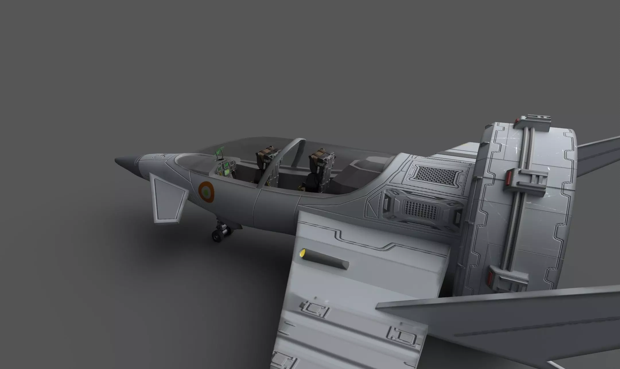 3D model of Fan Jet planes Concept Art. modeled in MAYA 23 and edge loops based mesh with reasonable polygon count and normal The geometry is made mostly on quads. and grouped Rendering.